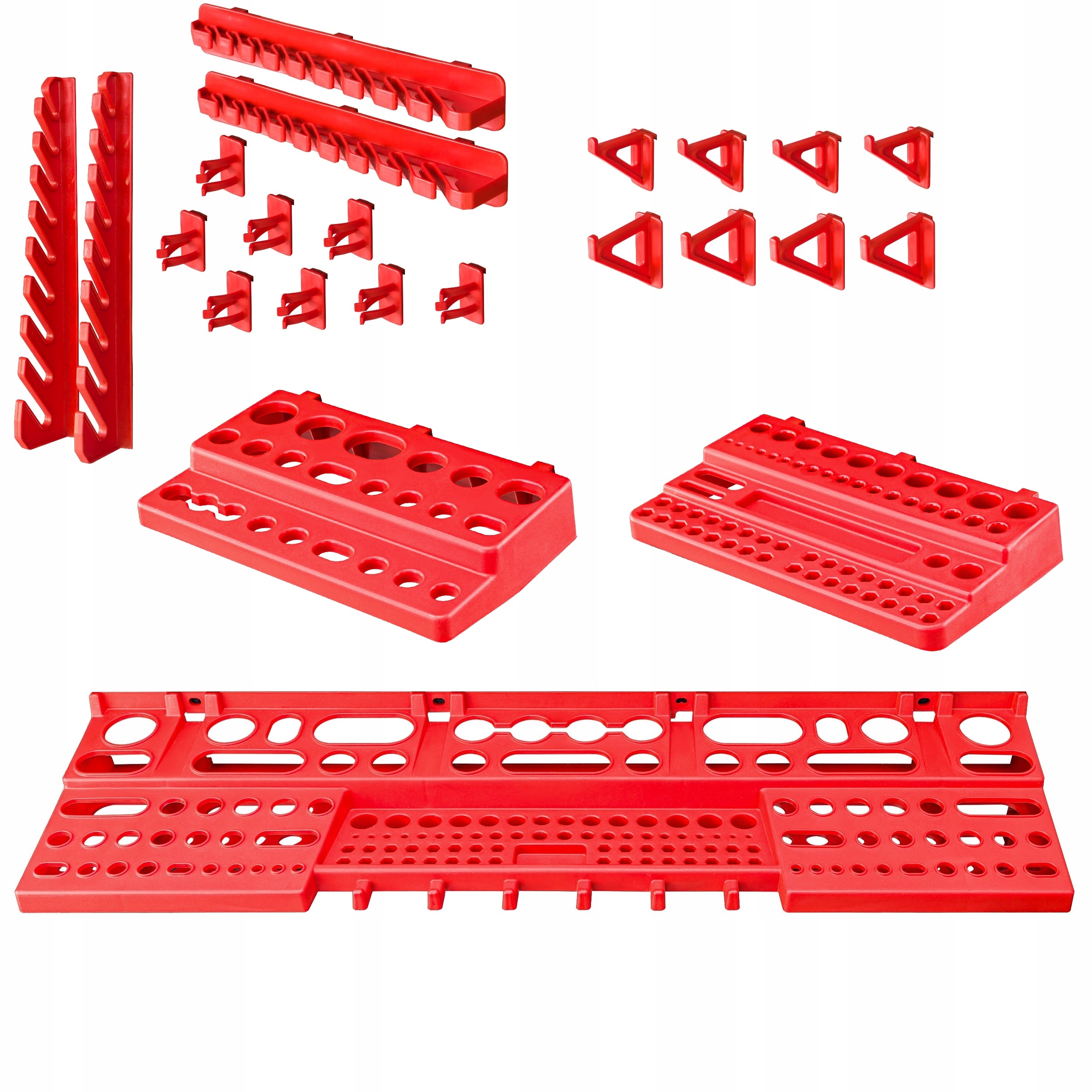 Одними з найважливіших елементів набору є тримачі інструментів і полички, які кріпляться до дошки горизонтально, дозволяють зрозуміло розташувати всі необхідні інструменти. Невикористаний простір над стільницею є ідеальним місцем для інструментальної панелі, що забезпечує доступ під рукою. У представлений набір входять тримачі для інструментів і полиці згідно специфікації: