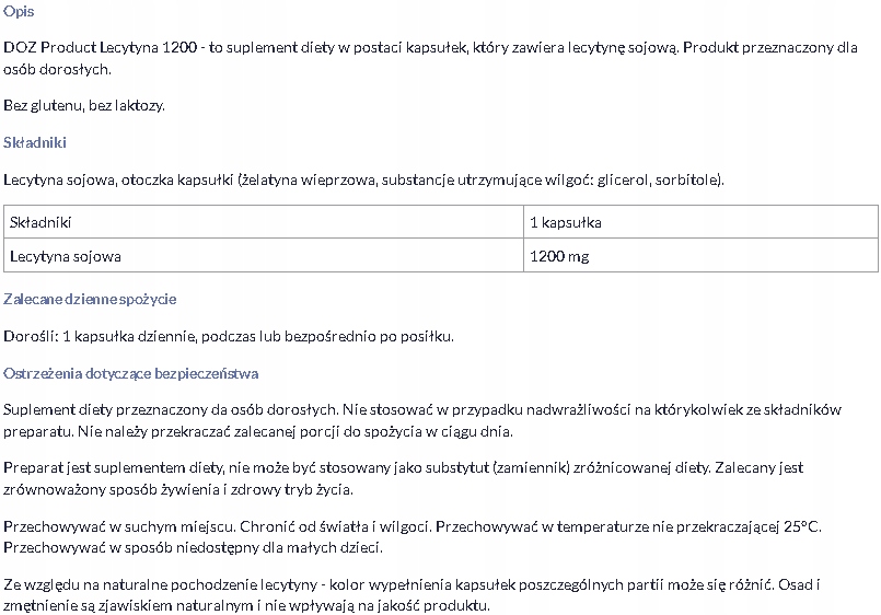Оплачивая «DOZ Product Lecithin 1200, мягкие капсулы для улучшения памяти, 60 шт.», вы можете быть уверены, что данное изделие из каталога «Память, нервная система» будет доставлено из Польши и проверено на целостность. В цене товара, указанной на сайте, учтена доставка из Польши. Внимание!!! Товары для Евросоюза, согласно законодательству стран Евросоюза, могут отличаться упаковкой или наполнением.