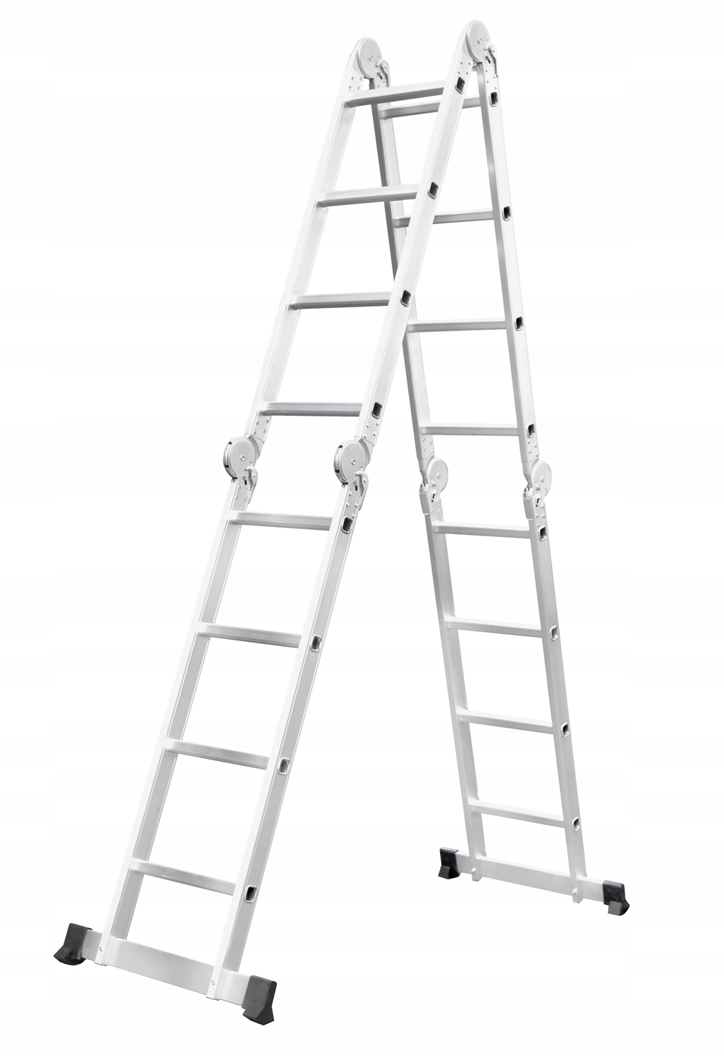 Модифікована багатофункціональна драбина дозволить вам виконувати заплановану роботу. 6 міцних петель дозволяють встановити драбину в 8 безпечних конфігураціях без втрати її стійкості. У складеному вигляді драбина легко поміститься в багажник автомобіля