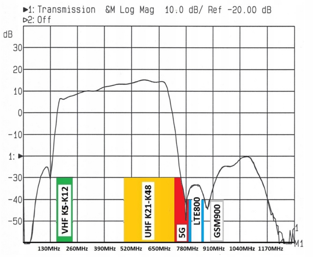 - зміцнююча смуга : uhf та vhf (канали 5 - 48)