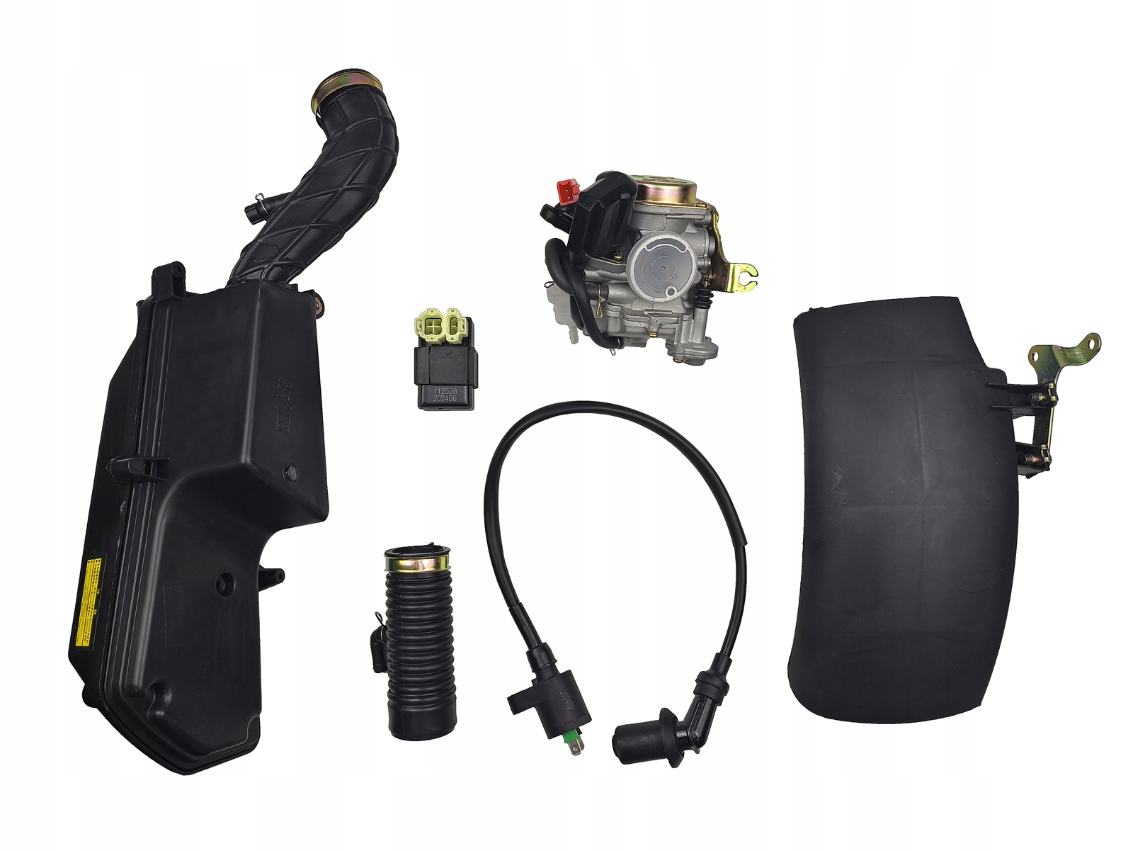 Двигун включений з повітряним фільтром, грязею, модулем запалювання, трубою, котушкою та карбюратором. Довгий валик дозволяє встановити для двох амортизаторів. Він підходить до скутерів 12 -дюймовим колесом. Двигун заводський затоплений нафтою. Коробка передач автоматична.