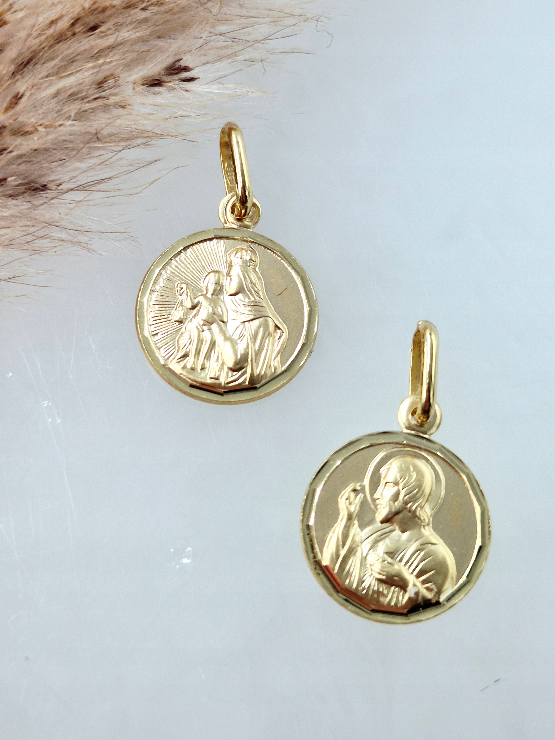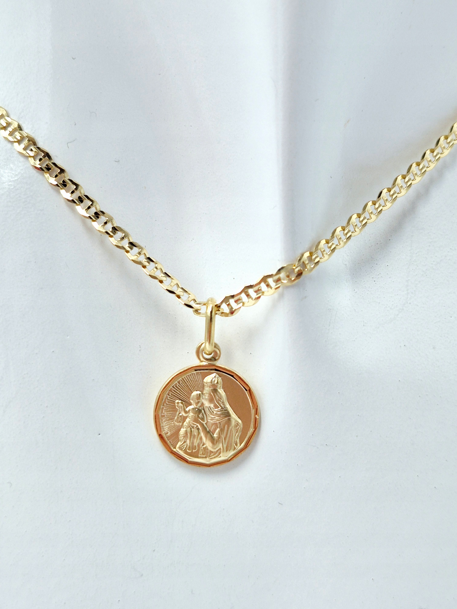 ДВОБІЧНИЙ ЗОЛОТИЙ МЕДАЛЬНИЙ ШКАПЛЕР БОГОРОДИЦІ 0,97G 585 14K ДОВЖИНА 2CM