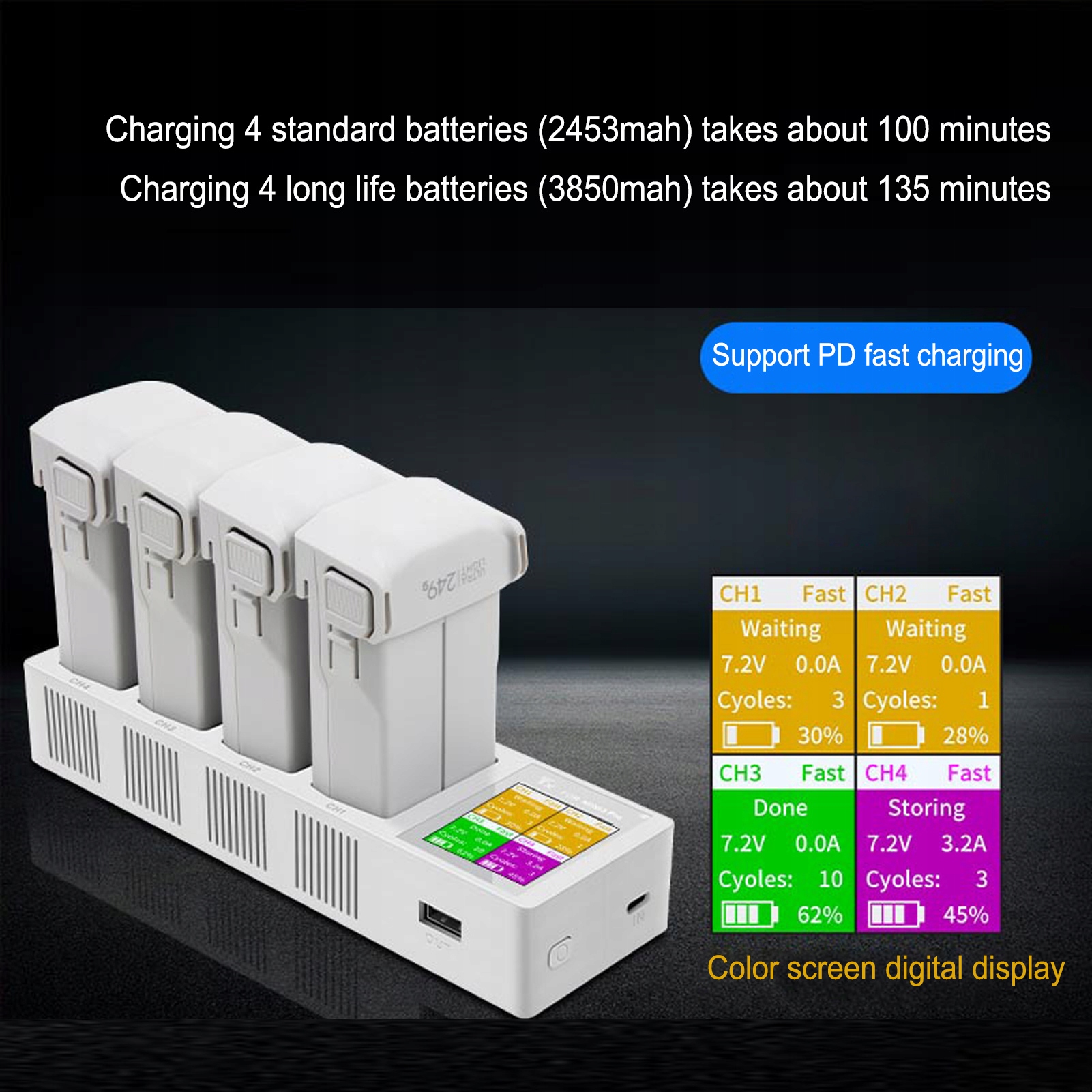 Центр зарядки акумулятора дрона, двонаправлений 4-портовий кольоровий дисплей, USB-зарядний пристрій UAV для DJI Mini 3 Pro Mini 3