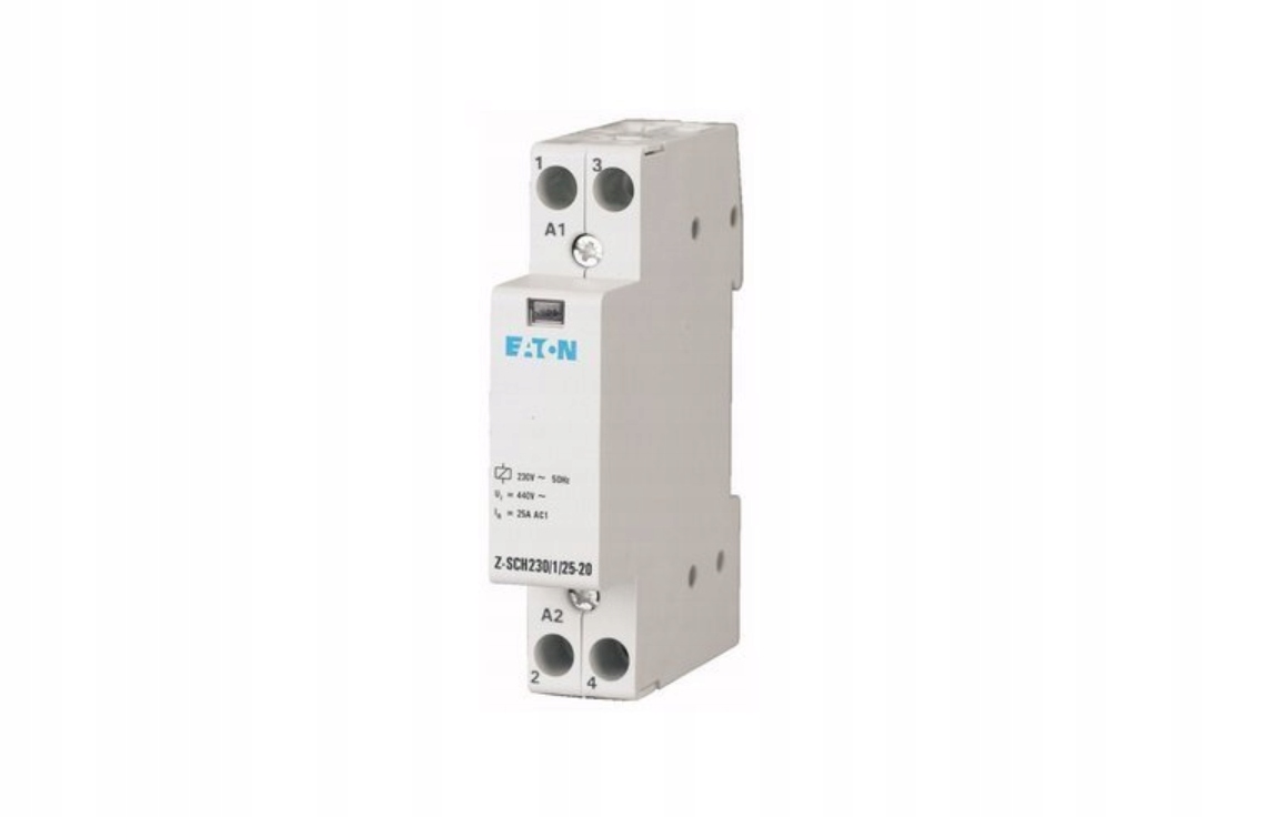 Контактори - це електричні пристрої, які зазвичай використовуються для вмикання та вимкнення струму за допомогою електромагнітної котушки. Модульні контактори Eaton Z-SCH використовуються як з'єднувальні елементи в системах управління двигуном, нагрівання, освітлювальні пристрої, насоси або вентиляція. Електрична напруга, наведена на електромагнітних затискачах котушки, викликає контакт без контактного контакту і, як наслідок, вмикання або вимкнено спалахи. Усі контактори Z-Sch були оснащені світильниками, що сигналізують про контакт контактора. Крім того, вони доступні в дуже широкій конфігурації контактів та контрольних напруг. Пристрій характеризується високою механічною міцністю та високою частотою стиків. Контактор Z-SCH230/1/25-20 був зроблений Eaton і позначив номером каталогу 120853. Номінальний струм цього пристрою для категорії використання AC1 становить 25А, а це означає, що потужність прикріпленого пристрою з напругою 230 В може бути 9,5 кВт. Напруга управління котушкою - 230 В змінного струму. Пристрій оснащений двома контактами для висновку. Механічна довговічність, визначена виробником, становить близько 100 000 циклів. Кріплення контактора до кріпильної рейки TH-35 здійснюється через засувку, щоб установка відбулася якнайшвидше без додаткових ускладнень.