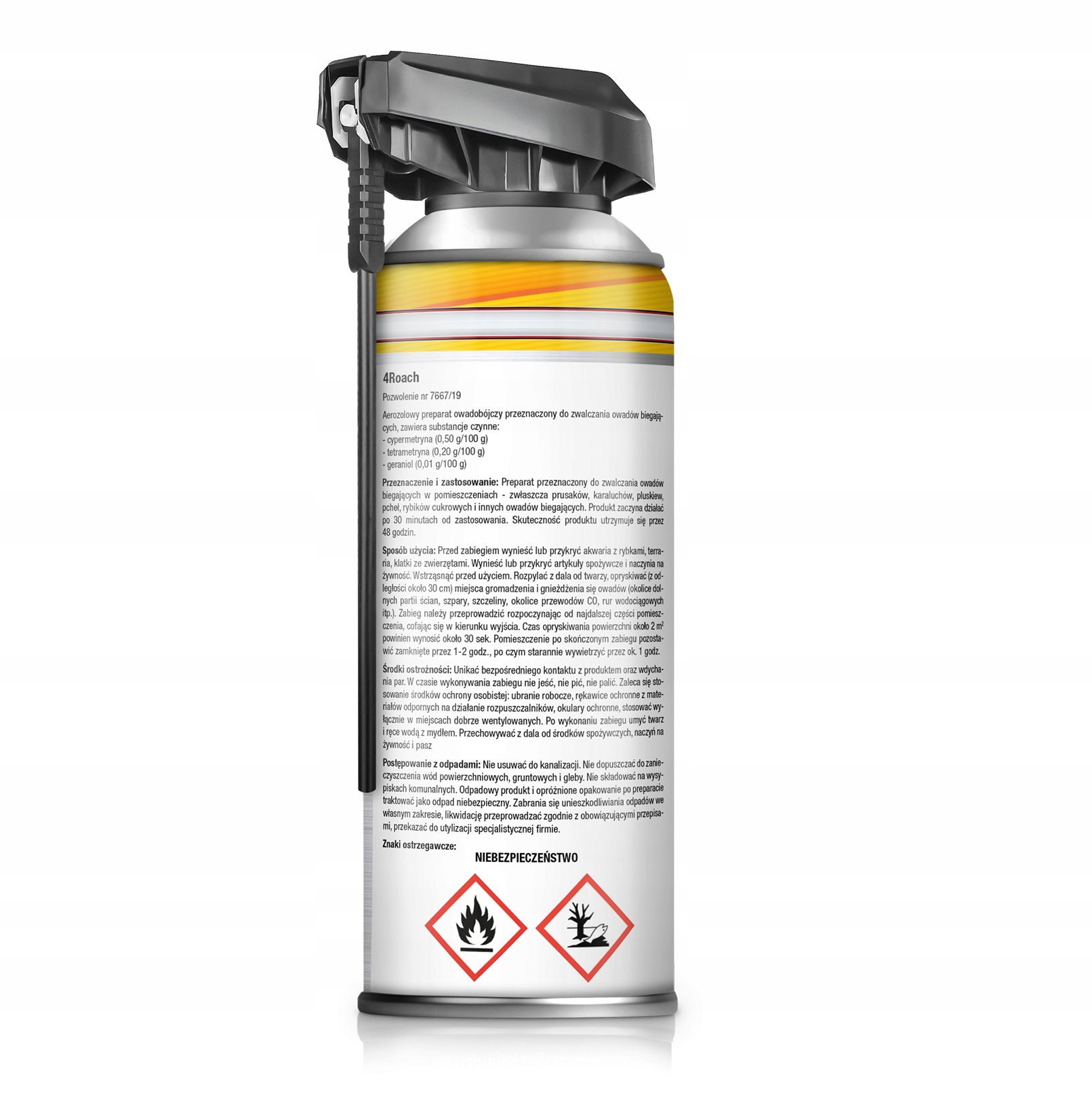 Перед використанням струсіть контейнер і розпорошуйте підготовку з відстані близько 30 см, утримуючи його подалі від обличчя. Варто зосередитись на місцях, де комахи найчастіше і гніздяться, особливо навколо нижніх частин стін, у прогалинах і щілинах, а також навколо труб СО та вод. Розпилення поверхні 2 м² повинно тривати близько 30 секунд. Після завершення процедури залиште кімнату закритим на 1-2 години, а потім ретельно провітрювано близько 1 години.
