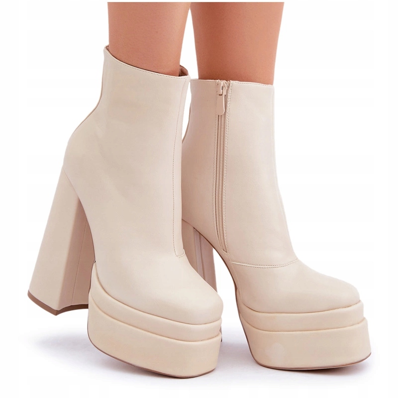 Еко шкіряні чоботи на масивній платформі та стовпському ізольованому світлі Beige 39