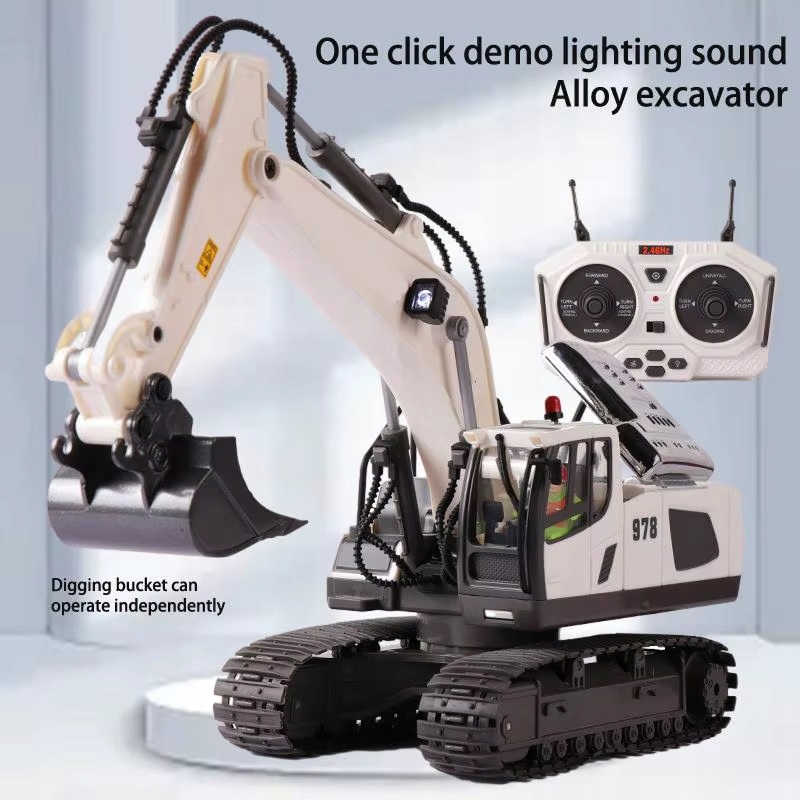 реалістичний екскаватор, керований дистанційним керуванням 2,4 ГГц , забезпечує дуже велику забаву кожному маленькому водію важкого будівельного обладнання.