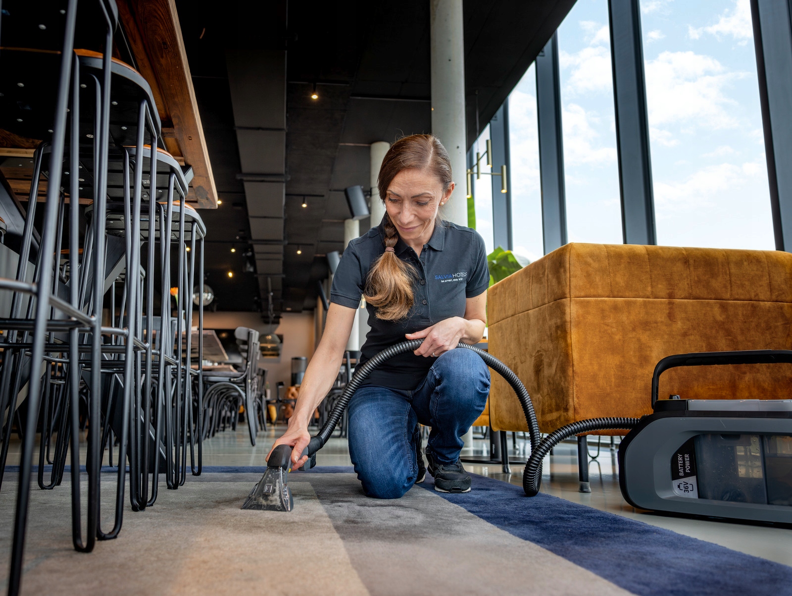Максимальна мобільність та ефективність у видаленні плям волокон на різних тканинах: компактний, 36В акумулятор для вилучення з ергономічною насадкою оббивки.