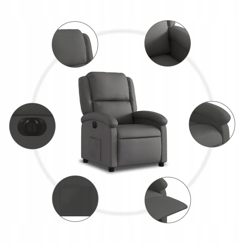 Електричне крісло з нахиленим спинкою, шкірою, 71x86.5x99.5 см, сірий