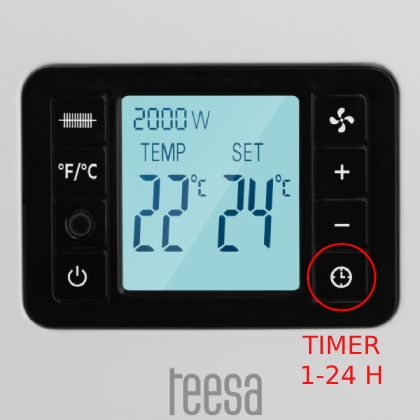 За допомогою функції таймера обігрівач працюватиме протягом заданого періоду часу (від 1 до 24 годин), а потім вимикається автоматично.