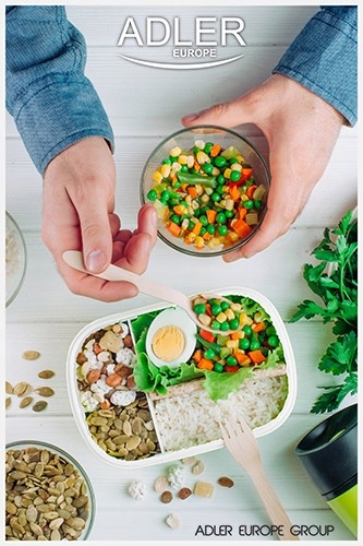 Ви любите гарячі страви, але не завжди можете з'їсти їх одразу після приготування? Ви берете обід на роботу? А може, ви збираєтеся в подорож і не зможете повечеряти? Контейнер для їжі з підігрівом AD4474 — відповідь на всі ці ситуації. Ви можете легко розігріти в ній їжу, а потім підтримувати її температуру, поки не з’їсте. Завдяки надійній теплоізоляції навіть після відключення від електромережі страва довго залишатиметься приємно теплою.