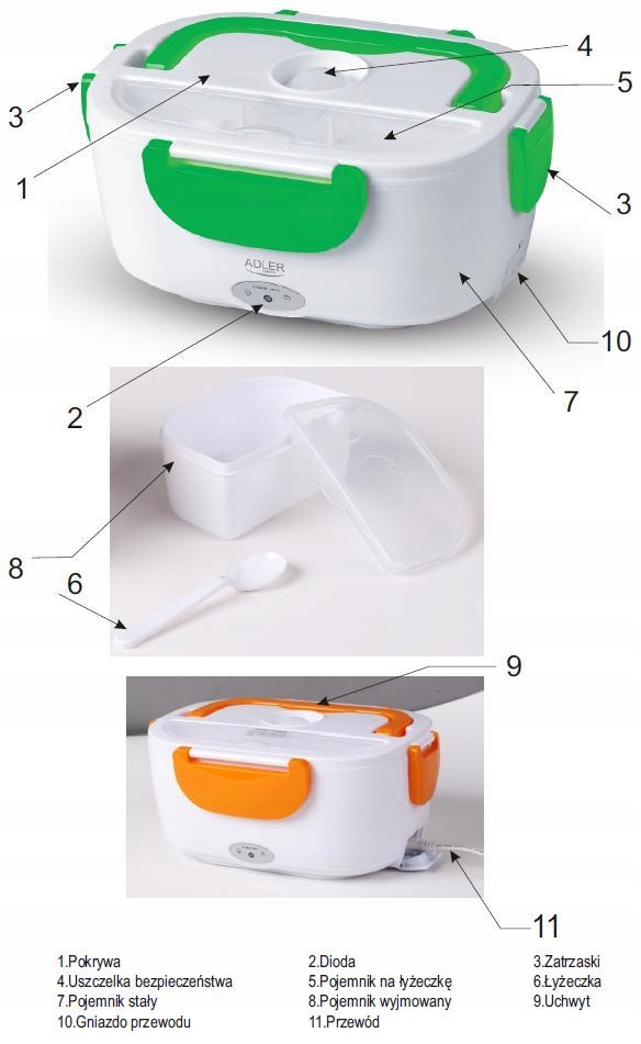 ЛАНЧ-БОКС З ПІДІГРІВОМ ADLER AD4474 ORANGE 230V ЛАНЧ-БОКС