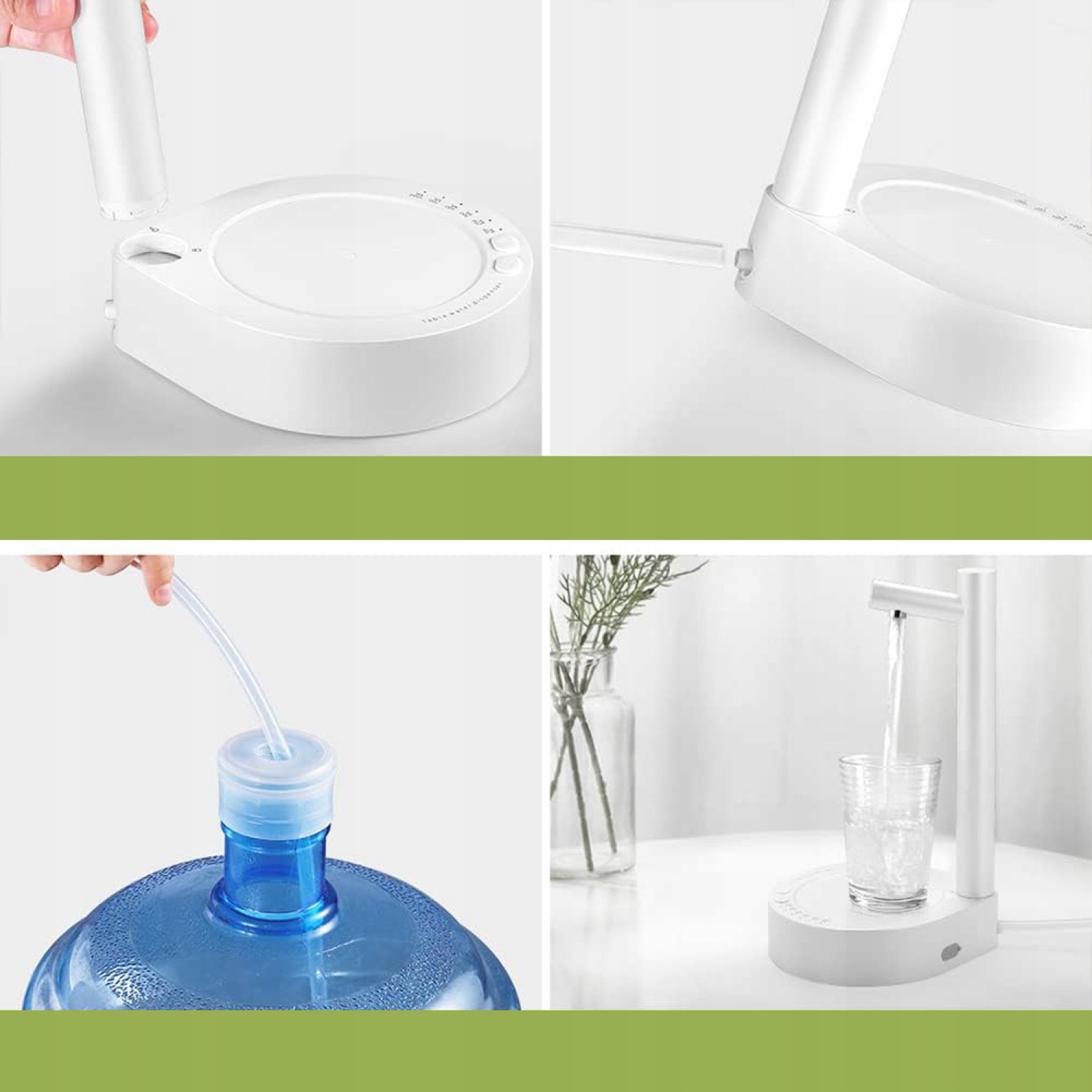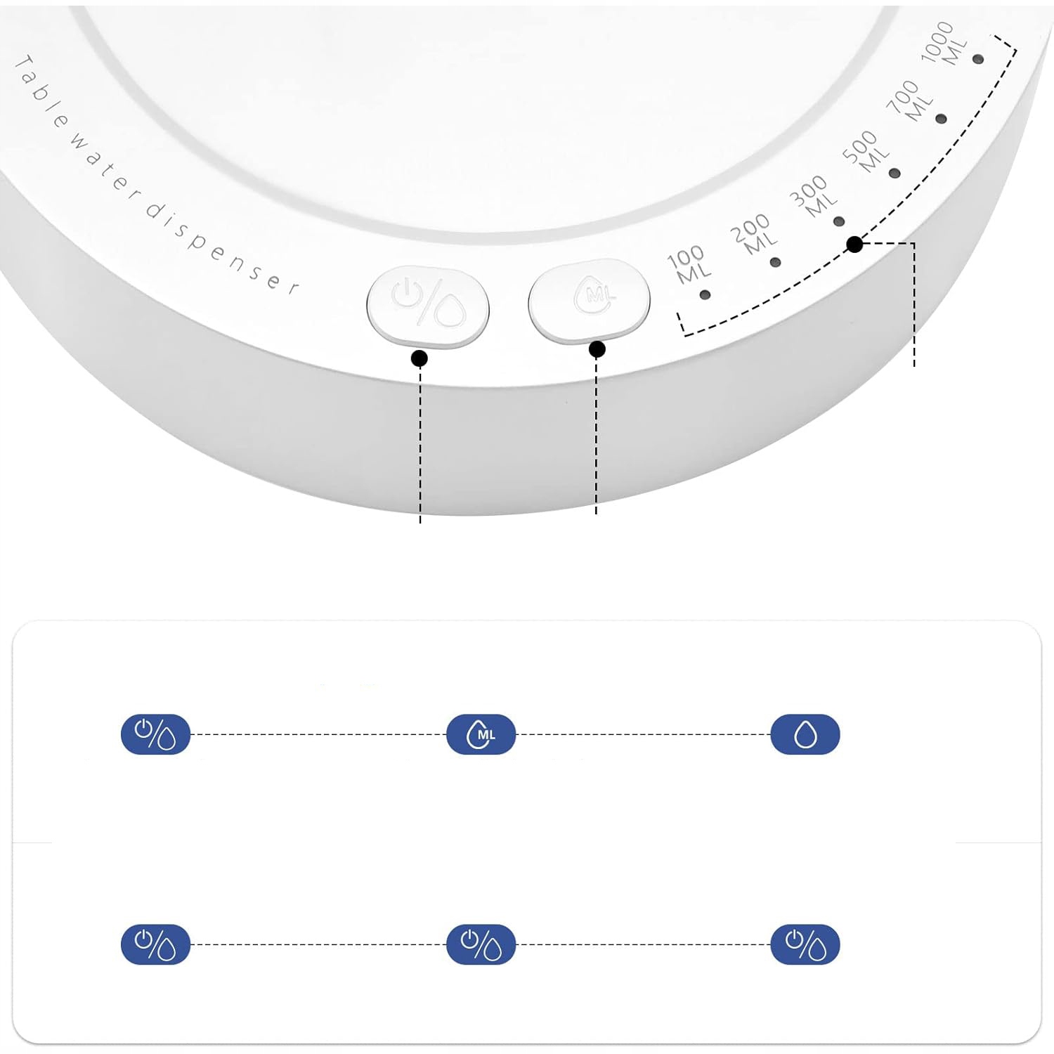 - 💦【Розумний дозатор води】Автоматичний дозатор води містить 7 попередньо запрограмованих об’ємів пиття: 100/ 200/300 /500/700/1000 мл/безперервне відкачування. Коли цей об’єм буде досягнуто, дозатор води автоматично припинить відкачування води. ПРИМІТКА. Будь ласка, розташуйте пляшку з водою нижче диспенсера для води (розташуйте шланг водяного насоса зверху вниз до пляшки з водою).