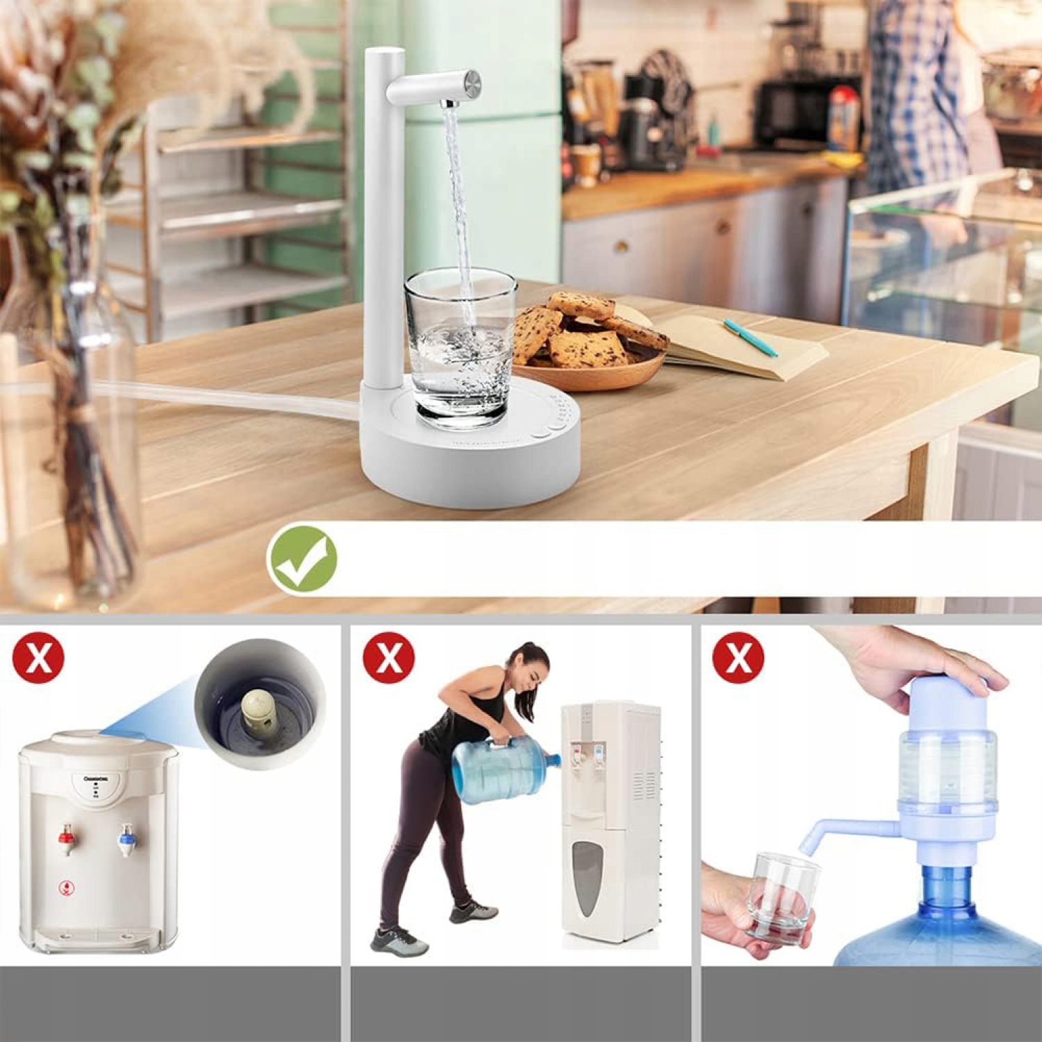 - 💦【Портативний і знімний дизайн】Диспенсер для води з піддоном унизу звільняє руки, забезпечує розумне використання води та легко переносити. Тому він ідеально підходить для офісів, на відкритому повітрі, у громадських місцях, у готелях, на пікніках чи кемпінгах тощо. Примітка. Щоб уникнути пошкодження схеми, використовуйте зарядну головку 5 В.