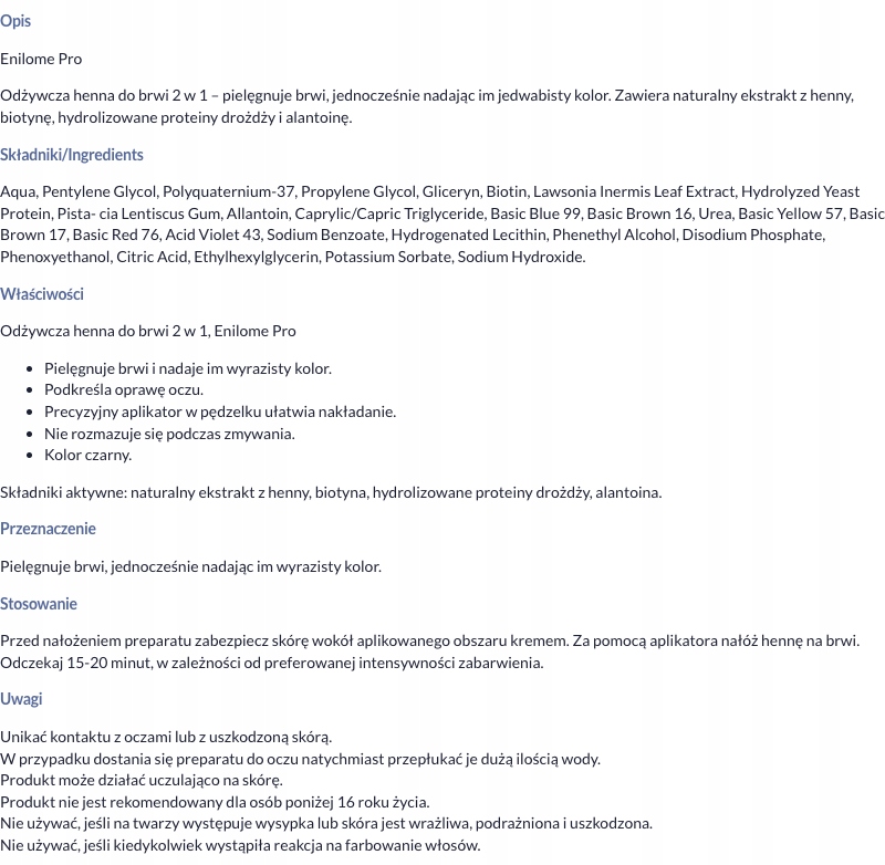 Enilome Pro, Харчальна хна для брів 2 в 1, чорний, 3 мл