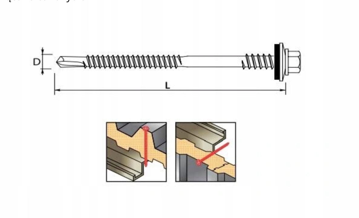 - 4. Нитка під головкою гвинта Додаткова нитка з збільшенням діаметром забезпечує належне розподіл прокладки EPDM на тонких облицювальних листах. Керамічне покриття сірого кольору - це найвищий захист від корозії, зберігаючи відмінну здатність до буріння. Завдяки цьому їх можна використовувати в вимогливих умовах, таких як середовище корозії класу С4.