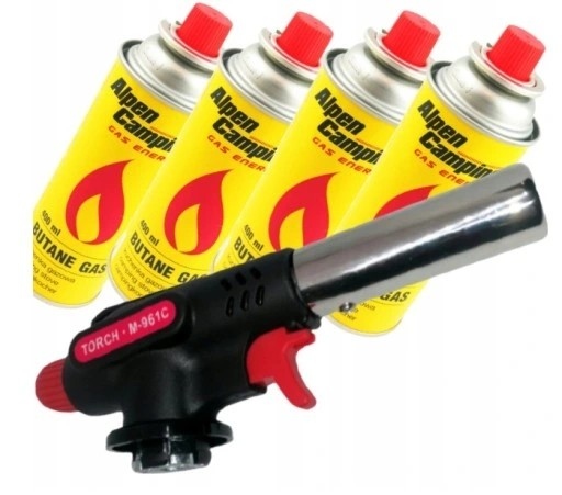 Факел газовий пальник M -961C - 360 + 4x Cartouche Alpen Camping 400 мл