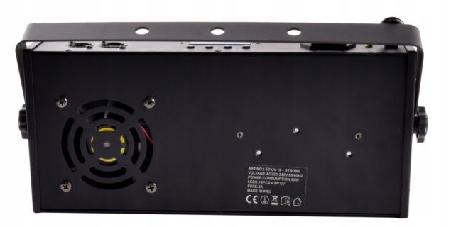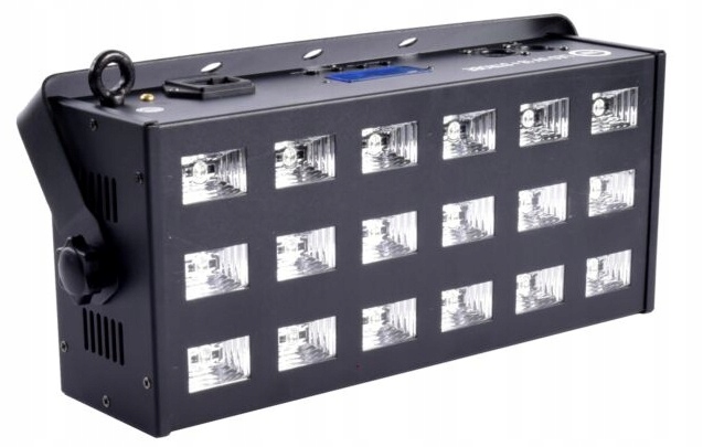 Компоненти фари були укладені в твердий, алюмінієвий корпус. На передній частині світлодіоди світлодіодні UV розташовані на матриці, що містить шість світлових точок за три рядки (6x3). Для обох сторін освітлювач кріпиться суцільною ручкою кріплення, яка полегшує встановлення пристрою на штативах, освітлювальних пандусів та сценічних кроквів . У верхній частині корпусу є розетка потужності IEC, 3-контактний вхід та вихід сигналу DMX, а також панель управління у вигляді цифрового світлодіодного дисплея та чотирьох кнопок. За допомогою їхньої допомоги ми можемо вибрати режим освітлення , який ми зацікавлені :