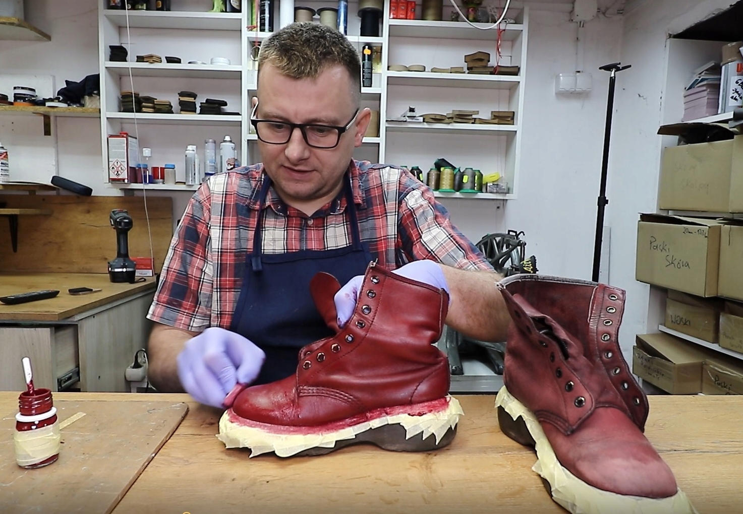 В даному випадку 3 шари фарби вистачило, щоб перефарбувати елементи взуття та написати літеру «М» :)