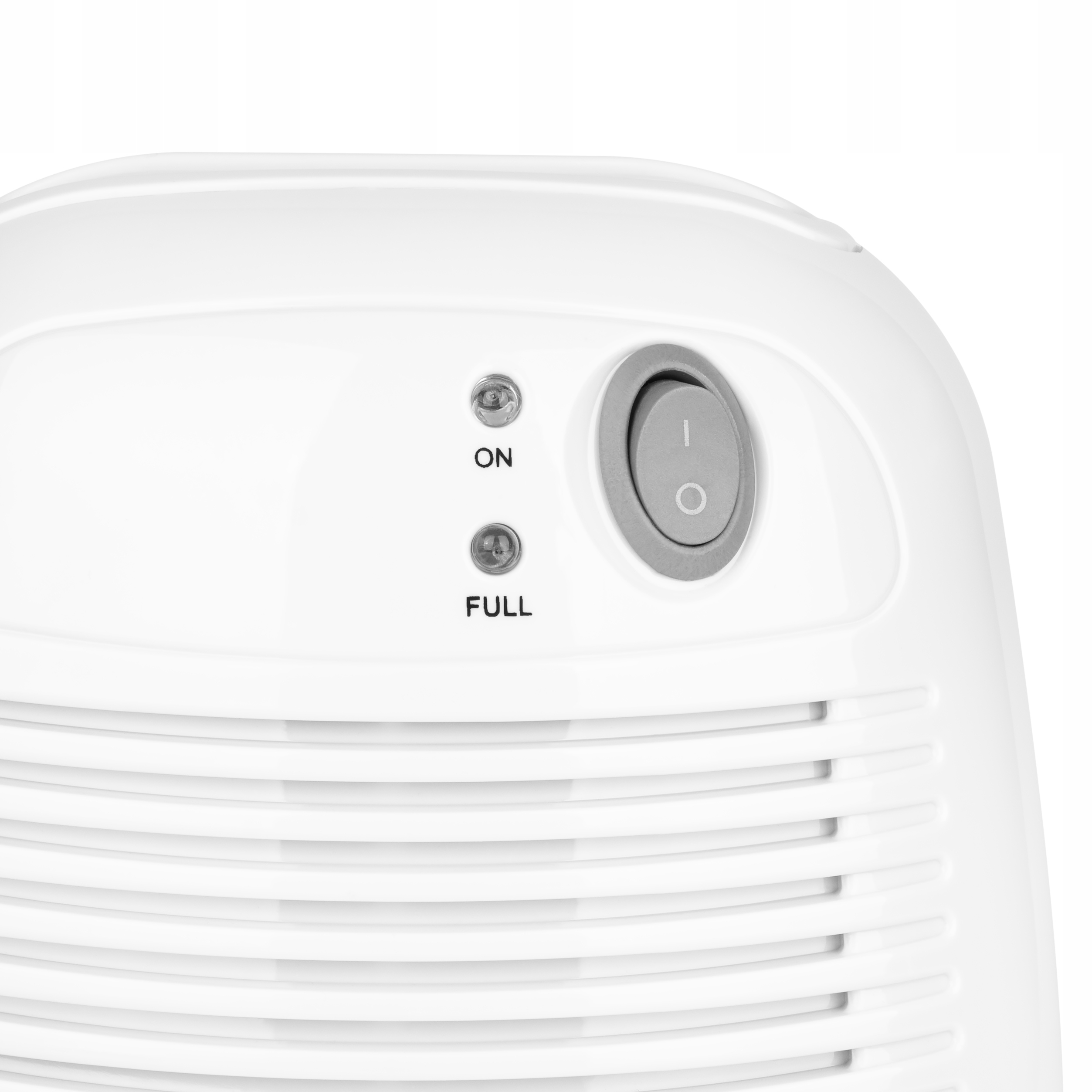 Осушувач повітря простий у використанні, а завдяки невеликим розмірам його також можна розмістити в гардеробі, гардеробні та кухонні шафи. Абсорбер має вбудований датчик рівня води. Коли резервуар для води заповниться, пристрій автоматично вимкнеться, а світловий індикатор зміниться із зеленого на червоний.