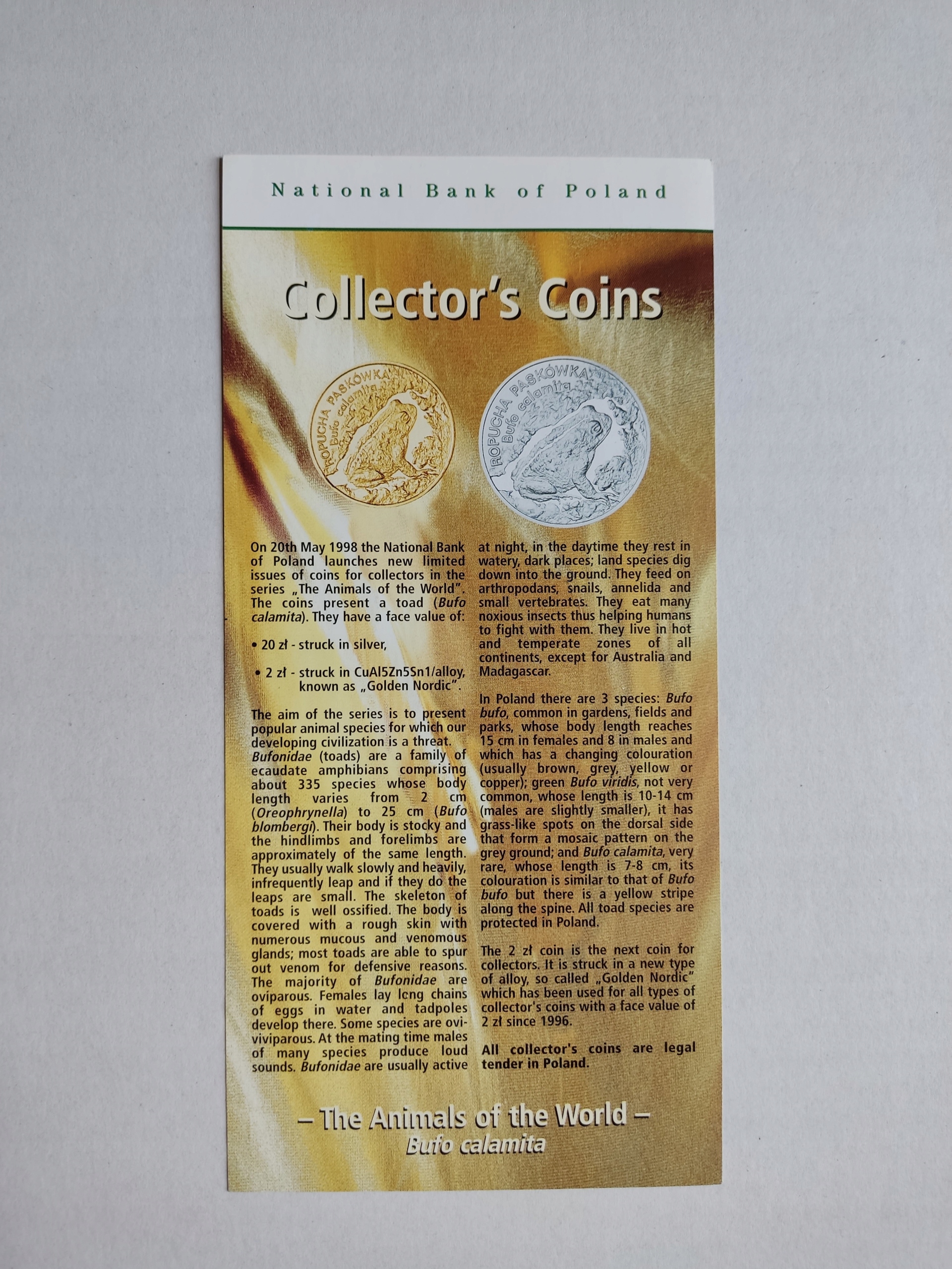 Folder NBP 1998 Ropucha Paskówka w j.angielskim