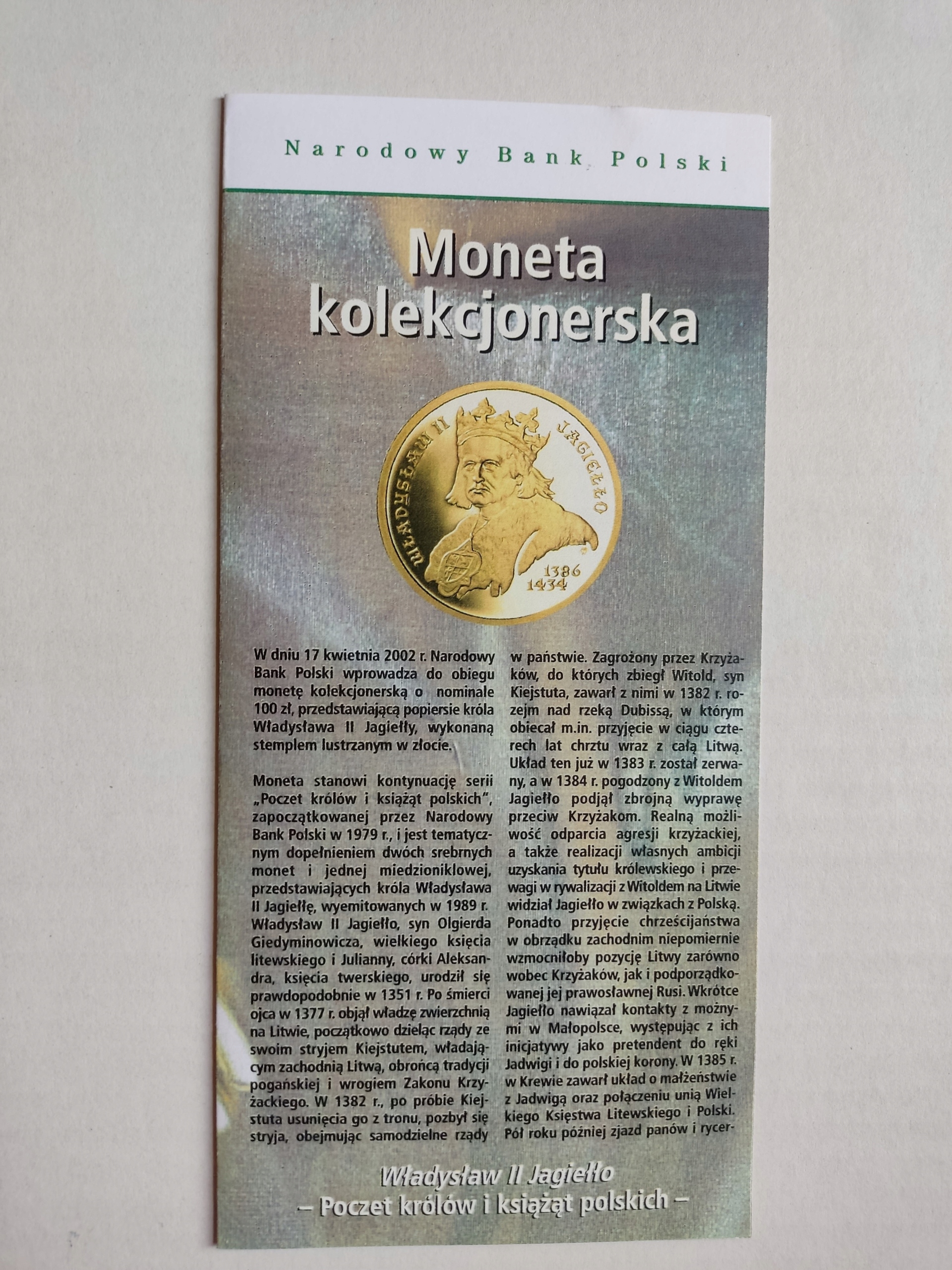 Folder NBP 2002 Władysław II Jagiełło w j.polskim