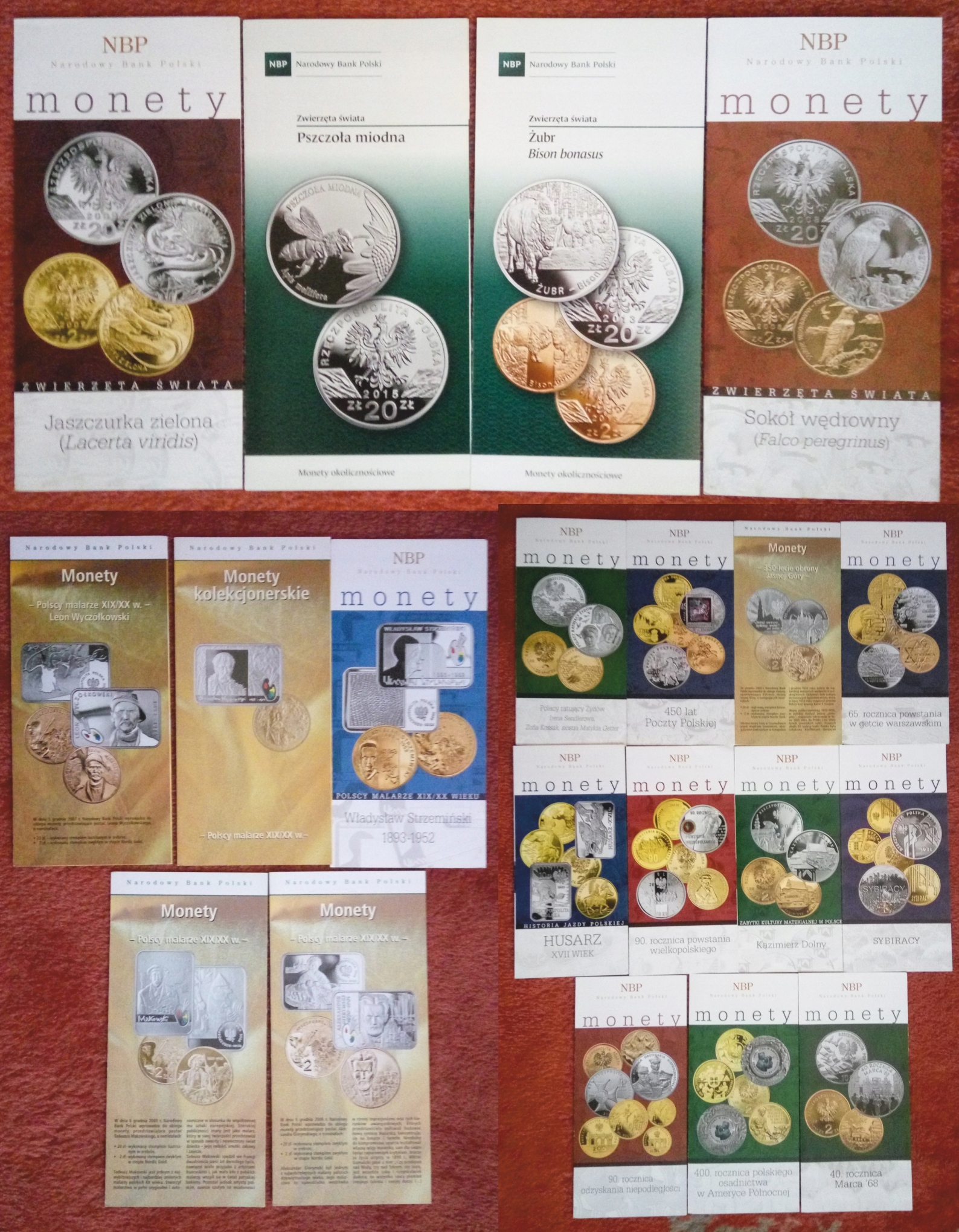 Foldery do monet polskich 20 sztuk Pszczoła Żubr Sokół Jaszczurka i inne...