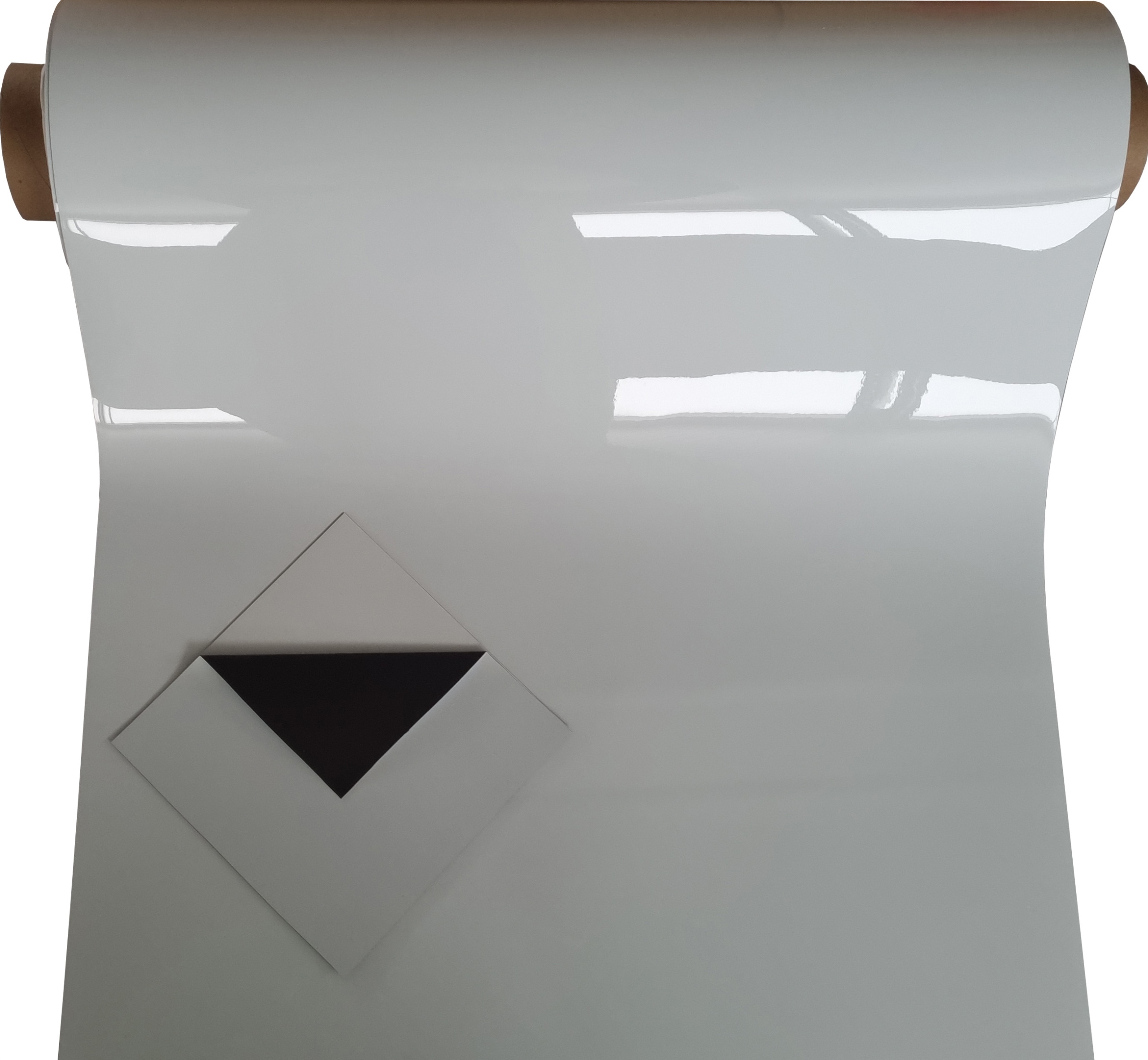 Друга частина — це ПЕТ-ламінат із сухим стиранням із шаром безбарвного клею, який ми використовуємо для ламінування першого шару.