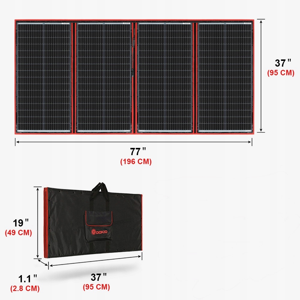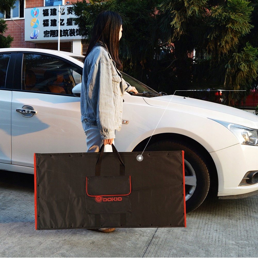 Dokio 300 Вт 18 В – гнучка, складна сонячна панель. Ця портативна сонячна панель підходить для різних випадків – для кемпінгу, човна, автомобіля, сімейної подорожі чи просто вдома. Це практичний набір, яким можна користуватися без проблем. Розгорніть його, підключіть до вибраного мобільного пристрою, і це все, що вам потрібно, щоб насолоджуватися додатковою та безкоштовною енергією! Слід зазначити, що сонячна панель займає дуже мало місця. Його можна помістити в будь-яку сумку або рюкзак. І на десерт варто згадати його міцну конструкцію, що означає тривалий термін служби та незаперечну довговічність набору.