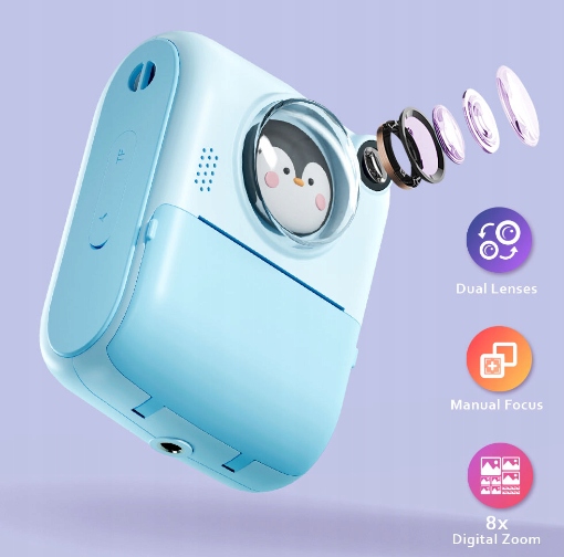МИТТЄВА ЦИФРОВА ФОТОКАМЕРА RAWAIN ІЗ ПРИНТЕРОМ ДЛЯ ДІТЕЙ + 3 РУЛИКИ ПАПЕРУ + РУЧКИ