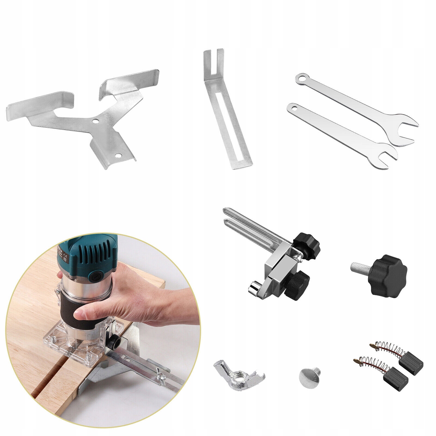 - - Включає різноманітні аксесуари, такі як гайкові ключі, тримачі, адаптери напрямних шаблонів, базова пластина тощо. Направляюча для обрізки, ролик проходить уздовж кривої, забезпечує точне різання, обробка кривизни в порядку.