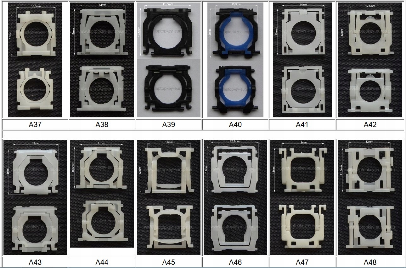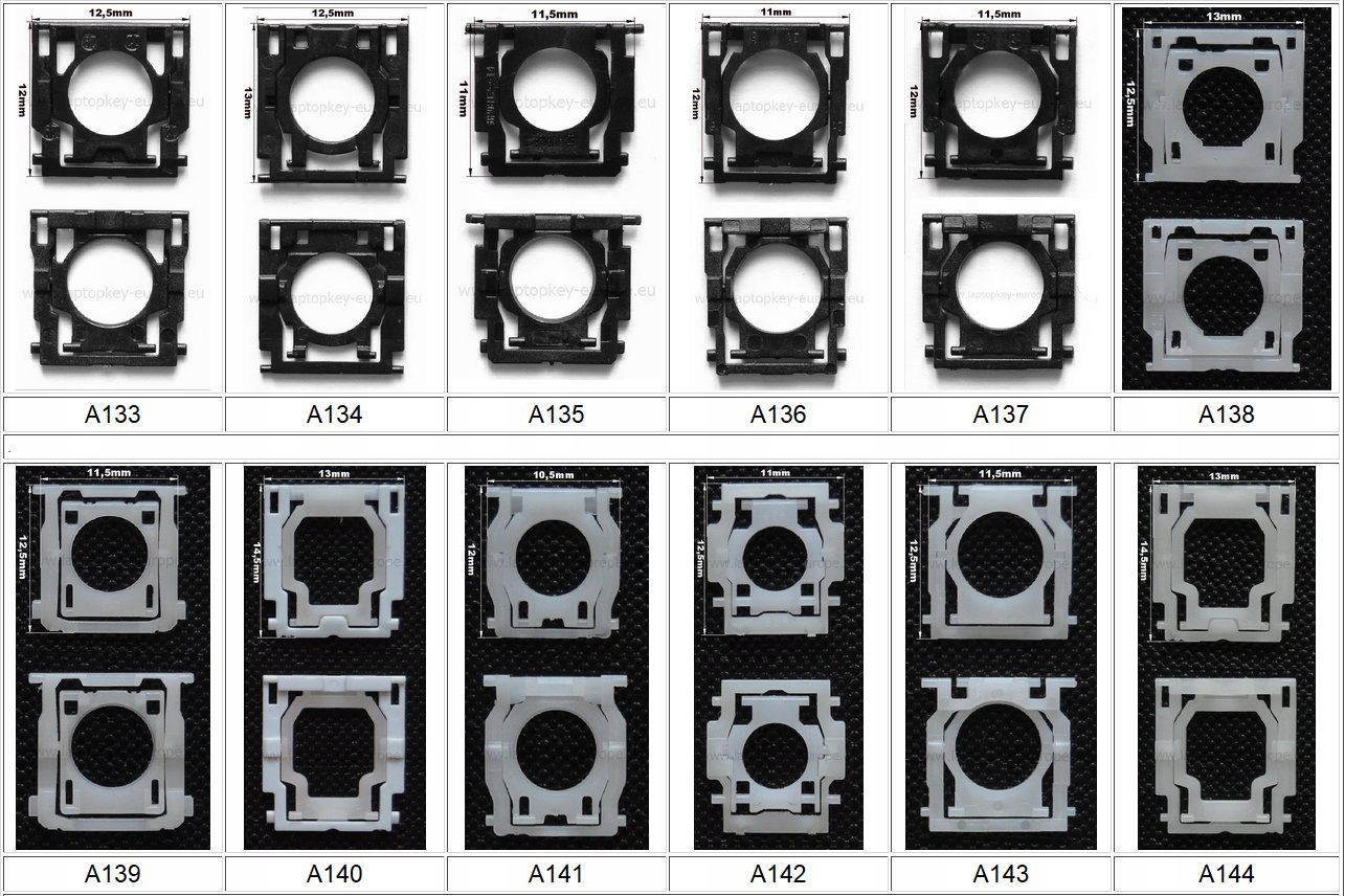 Предметом цієї пропозиції є середні кріплення для клавіш клавіатури. Ці фіксатори використовуються на стандартних клавішах, таких як цифри та цифри, а іноді й під великими клавішами. На кожній фотографії зображено однаковий гачок з обох сторін і два основних розміри з точністю до півміліметра. Кожен монтаж має свій унікальний номер, що дозволяє швидко оформити транзакцію. Після покупки напишіть у формі варіантів доставки або електронною поштою, яке саме кріплення відправити. Ціна вказана за одну штуку. Якщо у вас виникли проблеми з вибором, надішліть фото засувки або порожнього місця після ключа, і ми підберемо відповідний тип.