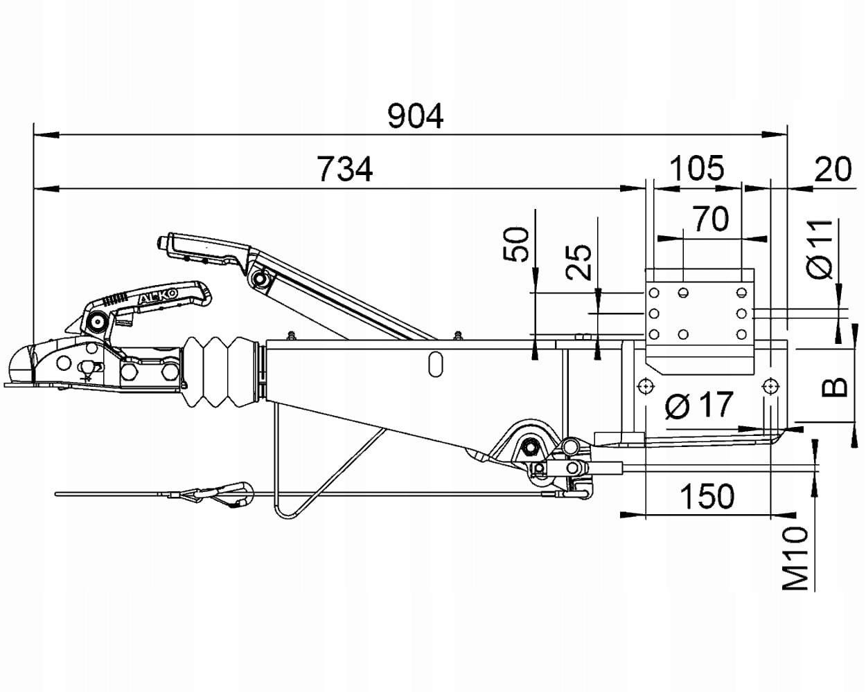 Предметом продажу є новий оригінальний обгінний пристрій 251S від відомої компанії AL - KO. Пристрій призначений для причепів з квадратним дишлом з профілем 100. Гальмо має кульову зчіпку АК 270, діаметр кулі гака 50 fi. Допустима загальна маса причепа для гальма 1500-2600 кг.
