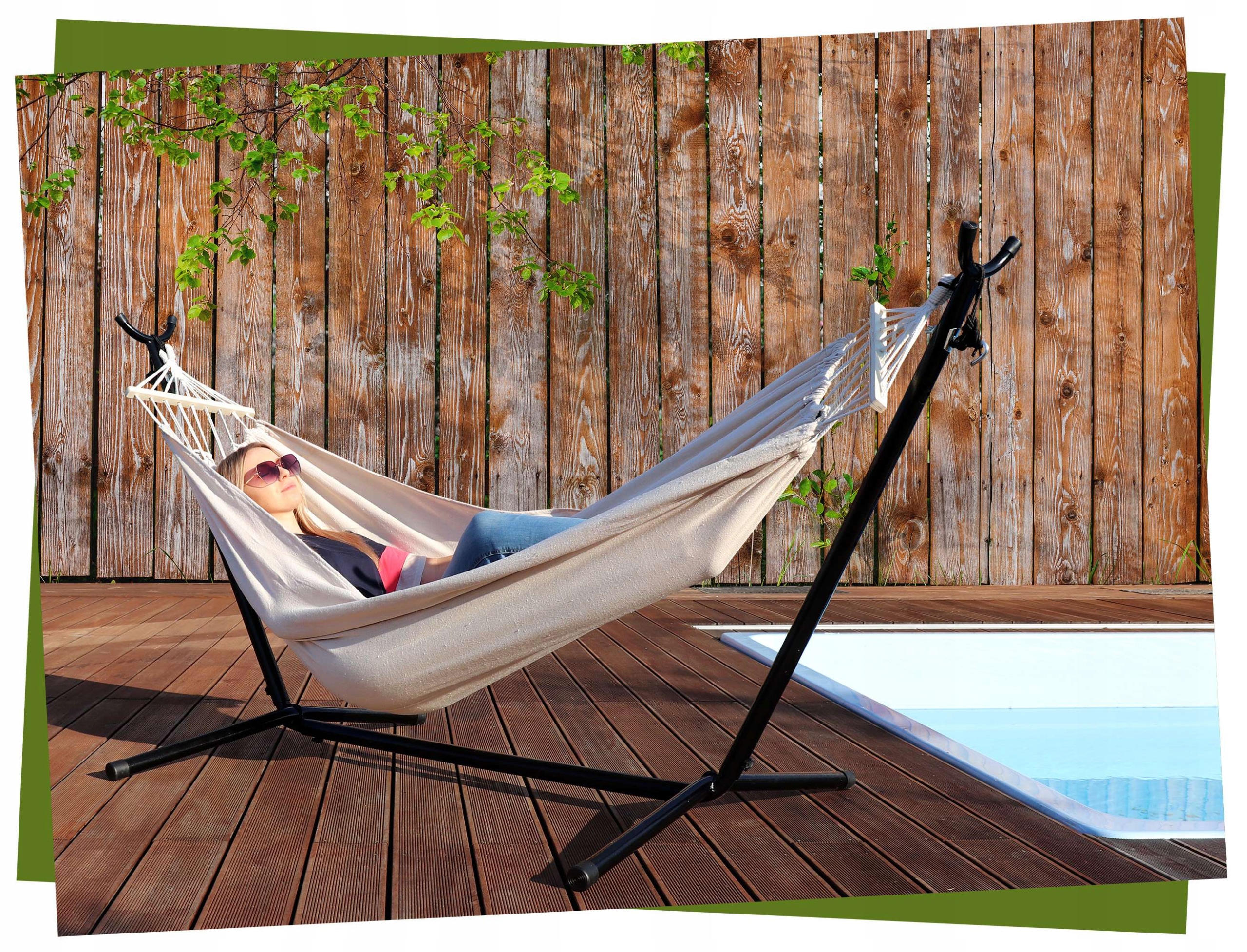 ✅ Великий подвійний гамак із зміцнюючою пов'язкою в нашій пропозиції також підійде як подарунок. Ідеально підходить для відпочинку в саду на свіжому повітрі, щоб насолодитися відпочинком на лоні природи, просто прикріпіть його до двох дерев, двох міцних стовпів чи інших подібних конструкцій.