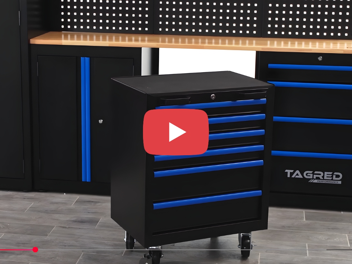 Найбільша нижня шухляда оснащена подвійними кульковими напрямними, завдяки яким легко витримує навантаження до 60 кг. Це ідеальне місце для зберігання більш важких інструментів, електроінструментів або деталей машин.