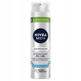 Гель для гоління Nivea Men Skin Protection для чоловіків робить щоденне видалення волосся на обличчі більш комфортним кількома способами. Це забезпечує ретельне та комфортне гоління, забезпечує плавніший та безпечніший рух леза бритви та захищає шкіру від подразнення. Активні інгредієнти, що містяться в ньому, живлять шкіру. До них відносяться: