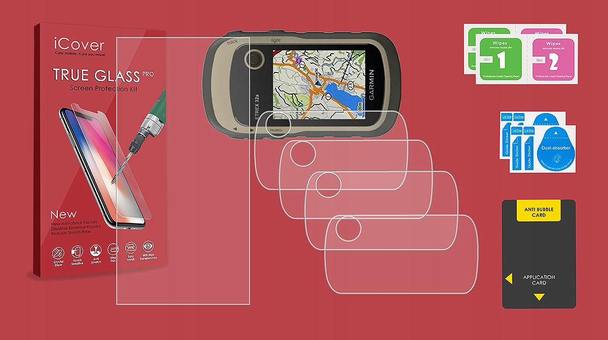 - 4 штуки скла iCoverдля GARMIN eTrex 32X1 штука (безкоштовно) iCover True Glass7" 80x160 мм (комбінація фольги та скла)1 x тканина без ворсу1 x волога серветка1 x картка додатка3 x наклейки для позиціонування1 x поглинач пилу