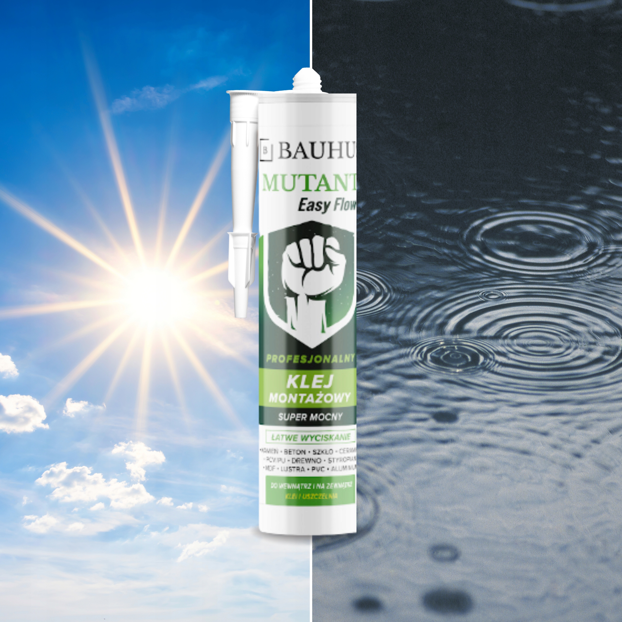 Що відрізняє MUTANT Easy Flow, це його виняткова стійкість до екстремальних погодних умов. Незалежно від того, клеїте ви елементи на балконі, в саду або на даху, ви можете бути впевнені, що клей не втратить своїх властивостей. Наш продукт повністю водонепроникний і стійкий до ультрафіолету, що робить його незамінним у будь-яких умовах. Це ключова перевага, яка відрізняє його від багатьох інших доступних на ринку клеїв, які втрачають адгезію під впливом сонячного світла чи дощу.