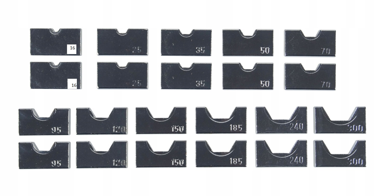 Обтискна машина поставляється з набором з 11 матриць розмірів: 25, 35 , 50, 70, 95, 120, 150, 185 , 240 і 300 мм²