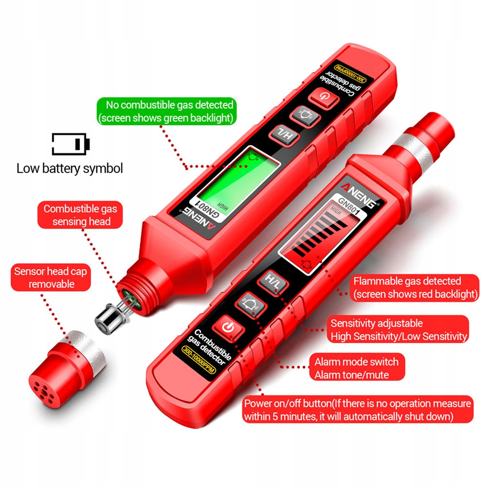 GN801 з звуковим тривожним портативним газом витік газового аналізатора газового аналізатора