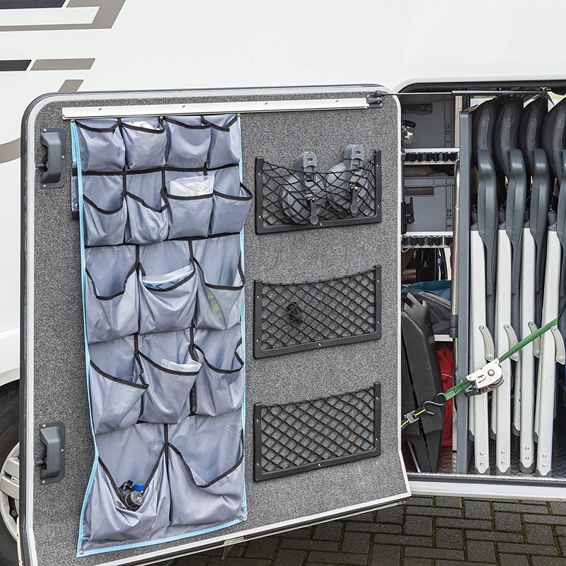 Гнучка сітка для зберігання розміром400 X 250 мм із пластиковою рамою є універсальним органайзером, ідеальним для встановлення нарівних поверхнях, таких як сидіння, двері або панель приладів. Завдяки своїй гнучкості сітка забезпечуєвелику місткість кишені, що дозволяє впорядковано зберігати різні речі. Естетична пластикова рама дозволяє легко встановлювати за допомогою гвинтів, що забезпечує довговічність і стабільність. Продукт є ідеальним рішенням для вантажівок, кемперів, човнів та інших транспортних засобів. Крім того, органайзери можна об’єднувати в набори, встановлюючи їх один біля одного, що дозволяє ще краще використовувати наявний простір і створити функціональну систему зберігання.