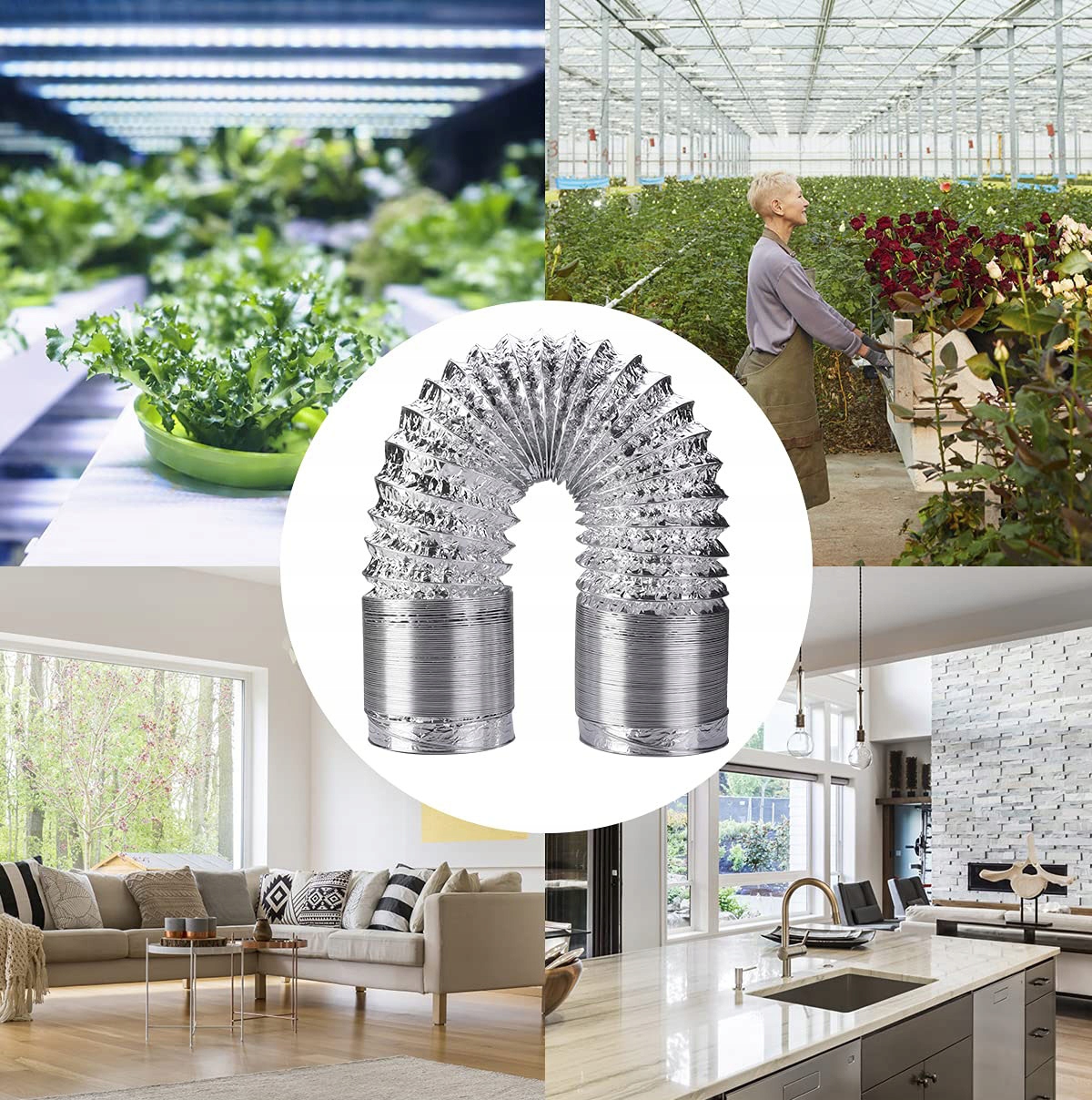 Використовуючи цю змію, ефективно з'єднують домашні вентиляційні пристрої та канал. Універсальне підключення дозволяє використовувати цю алюмінієву трубку для подачі повітря вентиляторами, лінійними вентиляторами, підйомниками кондиціонерів (кондиціонерів), домашньою вентиляцією тощо. Прості та прості у складі та з'єднання різних деталей, таких як кришка труби, решітка, комір, адаптер та інші.