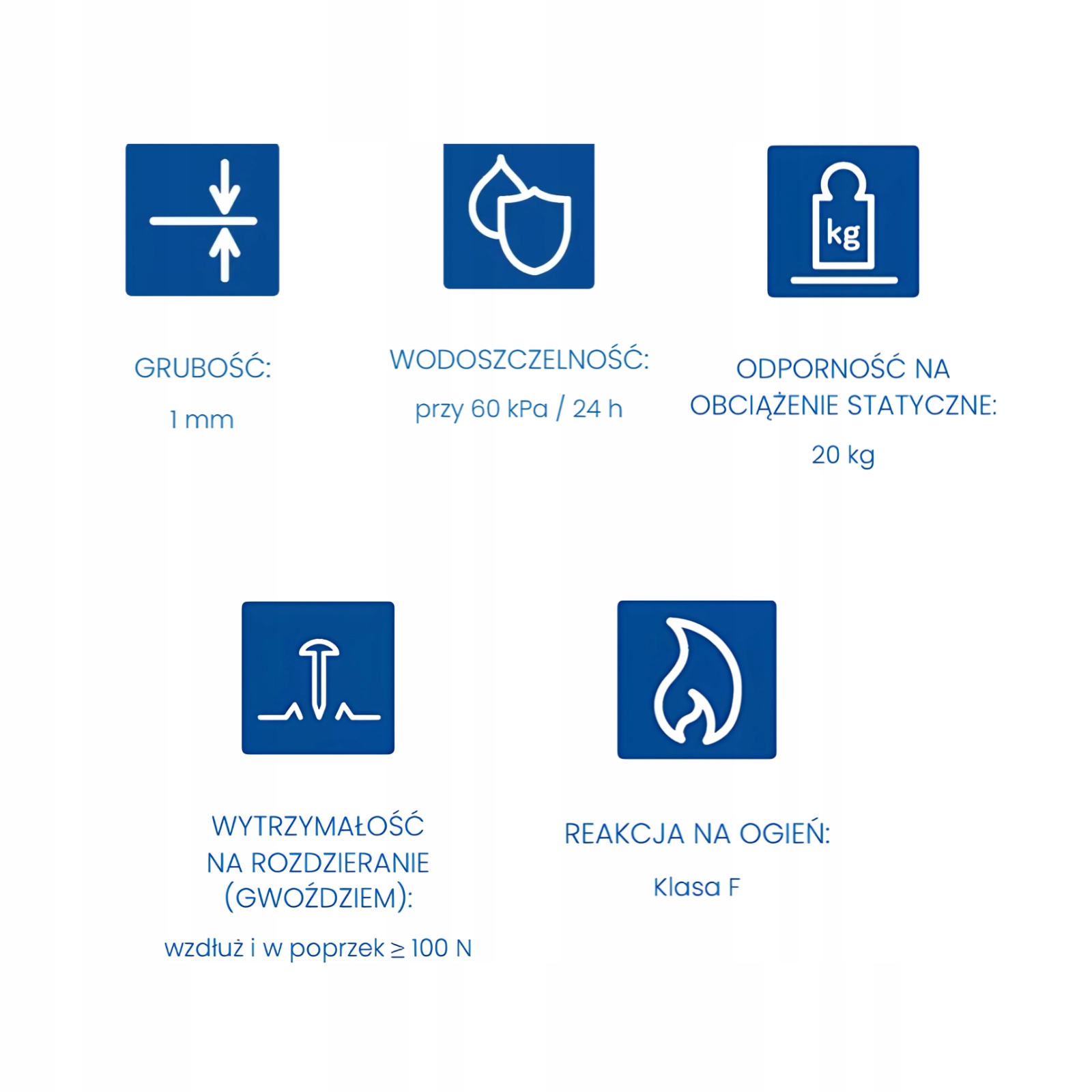 фольга для горизонтальної ізоляції secco pvc полівінілхлориду зі спеціальною делікатною системною тисненням забезпечує анти -слизовий продукт та ідеальну комбінації з кладовим мінометром. Її Відмінна гнучкість забезпечення дуже хорошої адгезії та стійкості до нерівномірно деформації землі, а також стабільних параметрів міцності під час експлуатації гарантують жорсткість продукту протягом усього використання використання. Волога