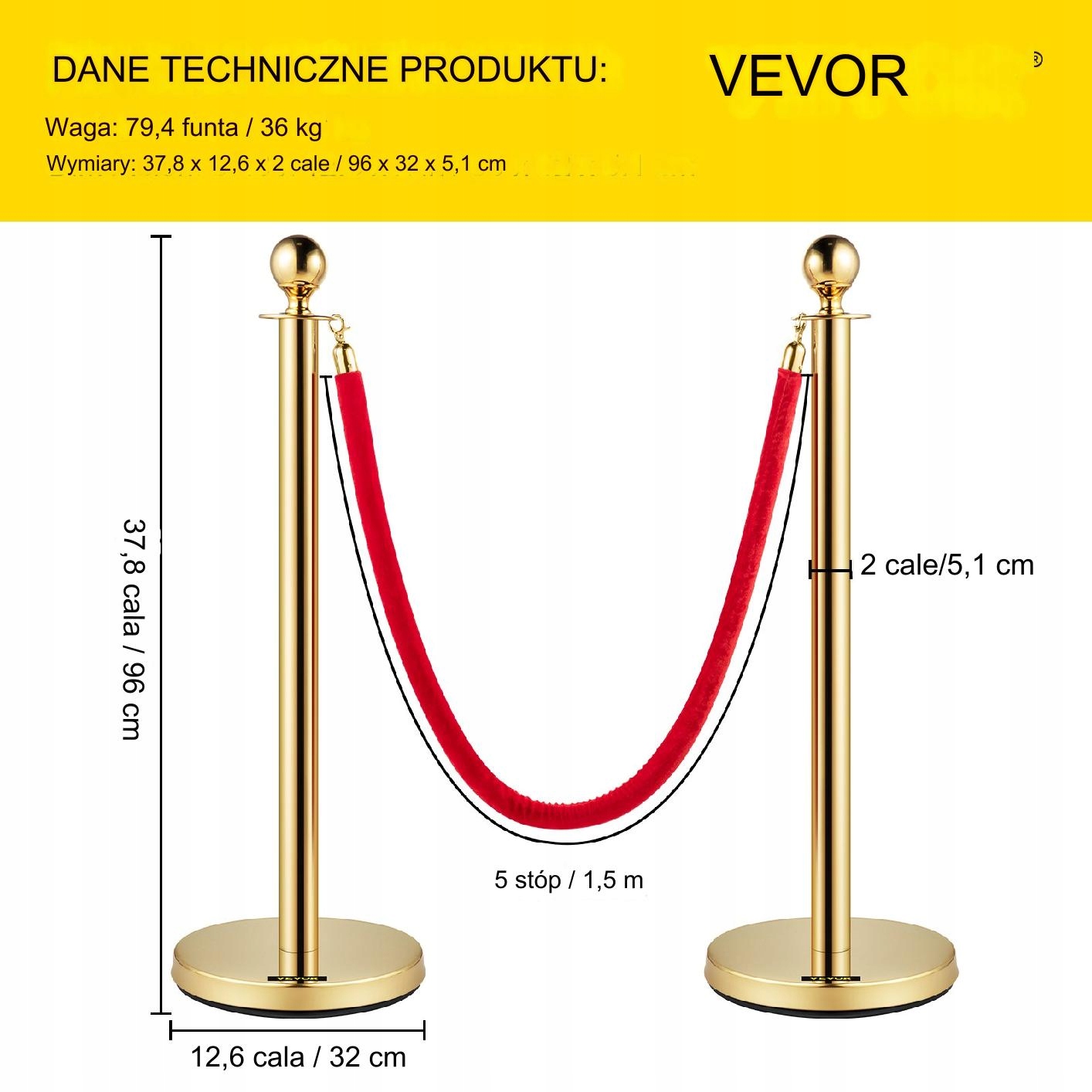 У набір входить 1,5-метрова мотузка з червоного оксамиту, яка є м’якою та надзвичайно естетичною. Ідеально підходить для контролю натовпу в місцях, де важливий престиж. Його елегантний характер ідеально підкреслює стиль заходів.