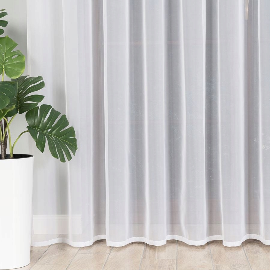 Злегка прозора біла вуаль пропускає природне світло, м’яко закриваючи інтер’єр від зовнішніх поглядів. Штора добре підійде у вітальню, спальню та дитячу кімнату, вносячи туди атмосферу спокою та порядку. Стрічка для збирання дозволяє точно підігнати ширину до вікна та рівномірно розподілити зборки, що робить її надзвичайно функціональним рішенням.