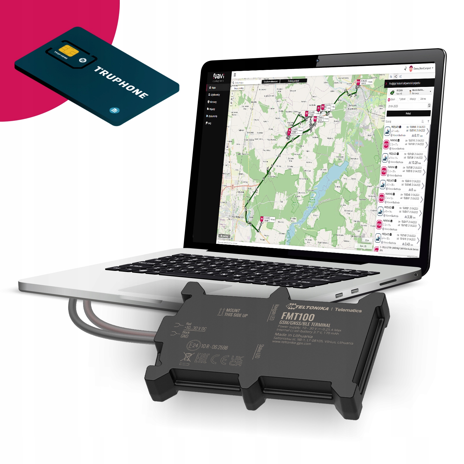 На цьому аукціоні ви купуєте пристрій моніторингу GPS Teltonika FMT100 для установки 12В,у комплекті ви отримуєте доступ до NaviCompact b> протягом12 місяців і SIM-карта Truphone включена у вартість продукту, яка працює в ЄВРОПІ ТА СВІТІ*!