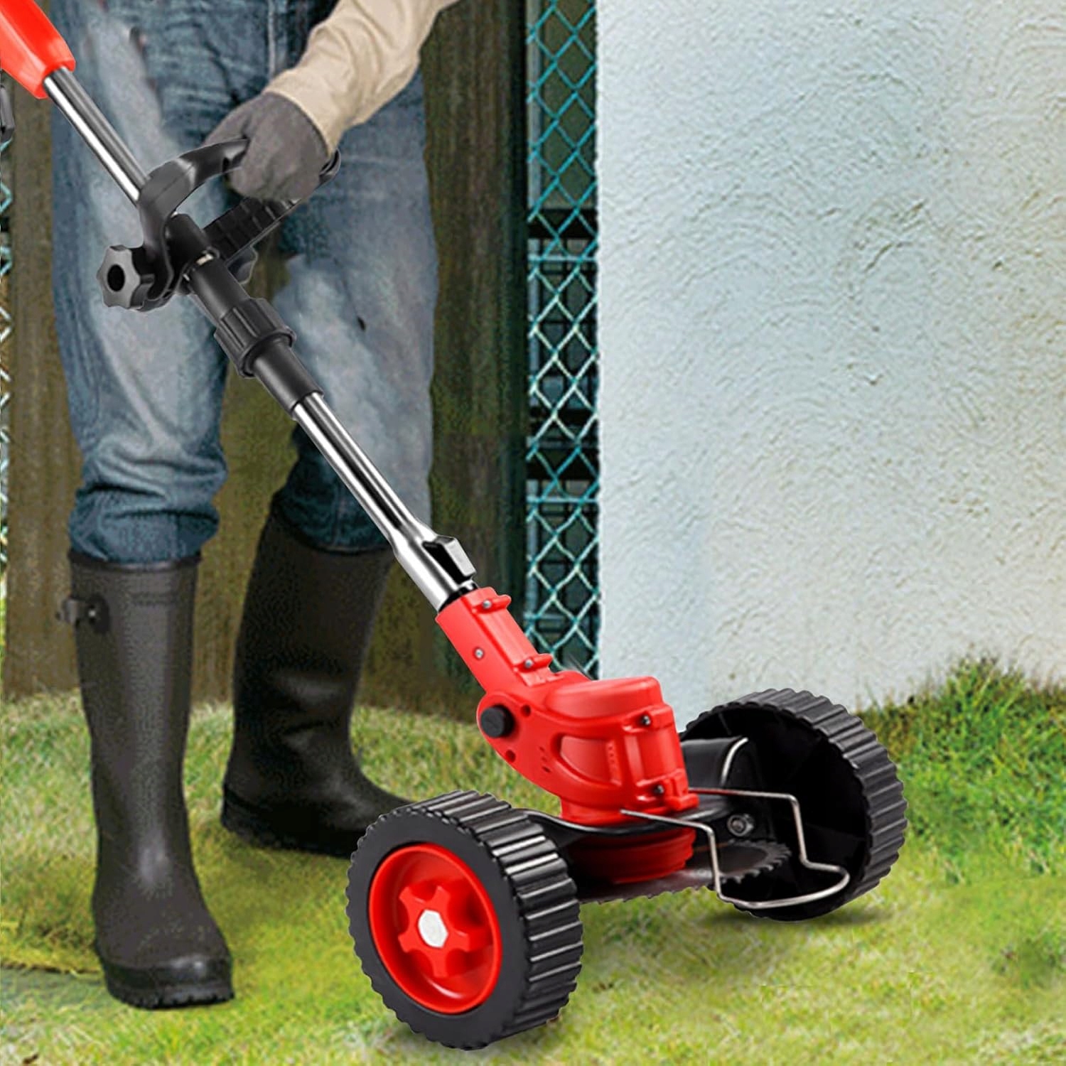 Електрична трав'яна трав'яна трав'яна трав'яна трава з колесами пропонує багато функцій: саду Grasstline, газонний край, галочка -tiller, коник, легкий для різних робіт, пов’язаних із різанням, необмеженими кабелями, ви можете проводитись у всьому світі. Він містить 2 великі іонні батареї з великою ємністю 2000 мАг та двигуном 18000 об/хв