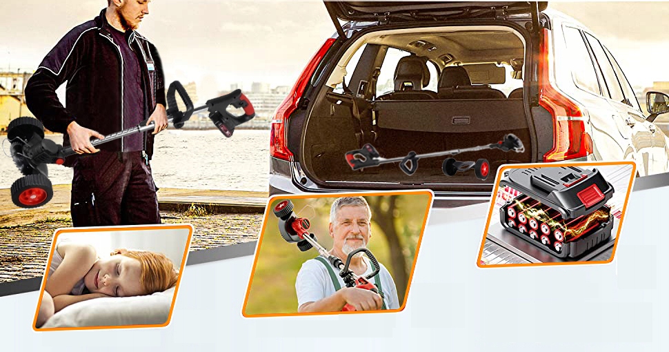 - Косла оснащена вдосконаленим двигуном 880 Вт, який обертається зі швидкістю до 10 000 об/хв, що забезпечує високу ефективність та ефективне стиснення. Косиння бур’янів та зарослих газонів.