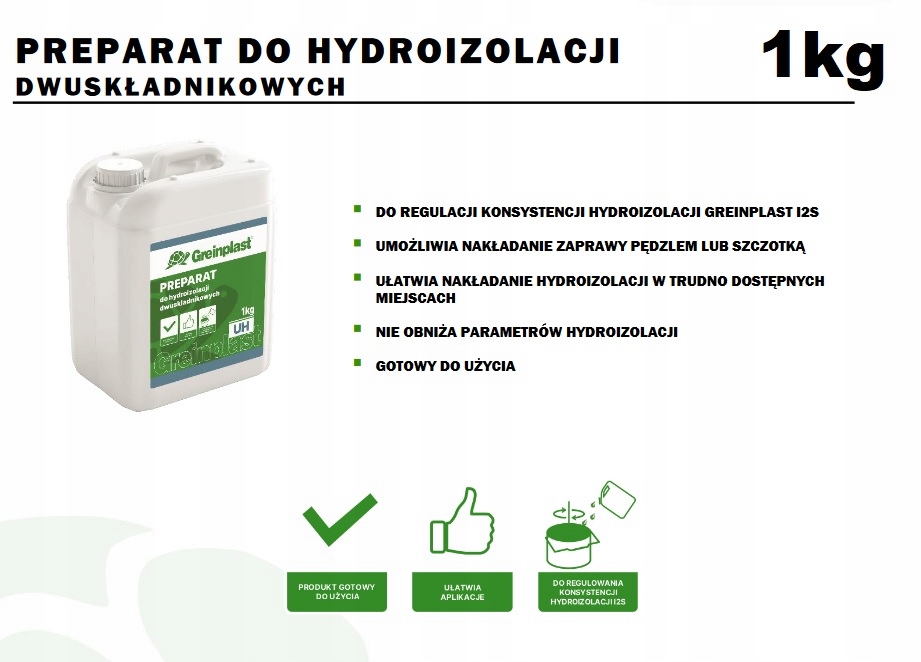 Для покращення робочих властивостей гідроізоляції її можна розбавити Greinplast UH.