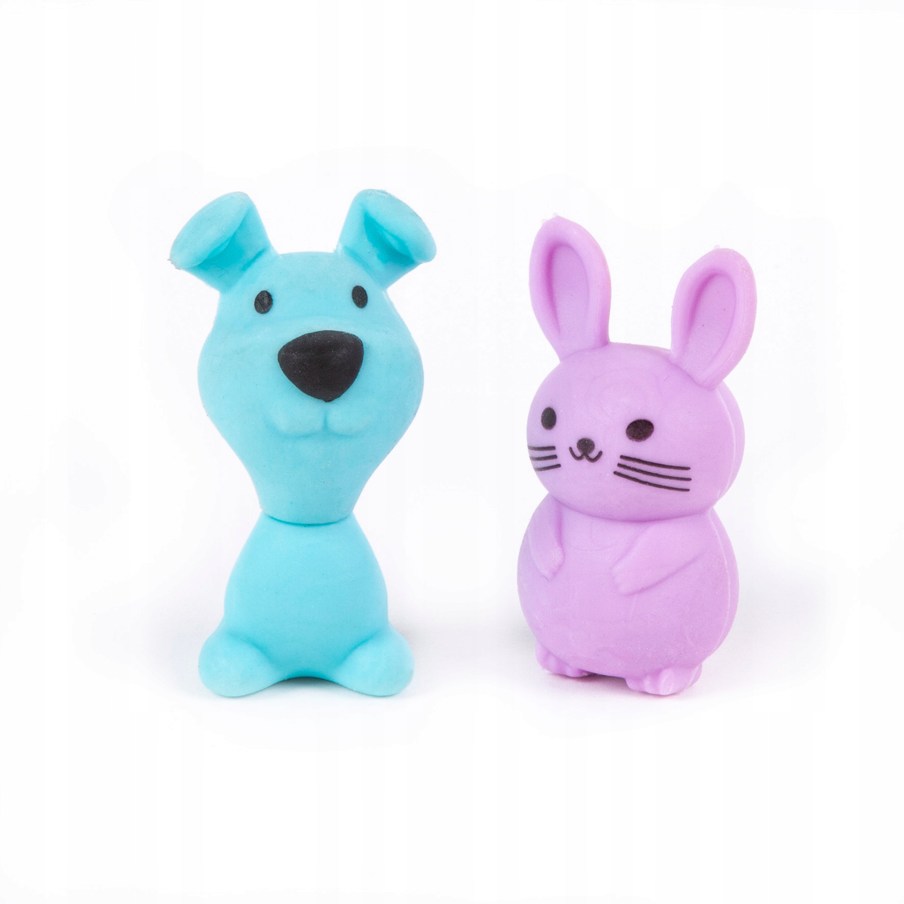 Ці гумки точно порадують кожного! Чарівний зайчик фантастичного рожевого кольору та бірюзова собачка. Разом вони складають ідеальний дует! Вони змушують вас відчувати себе максимально емоційно... Це чудова пропозиція для великих і маленьких дітей! Вони ідеально стирають і виправляють малюнки, не пошкоджуючи папір і не розмазуючи його.